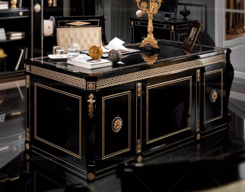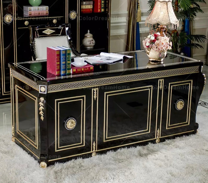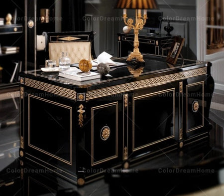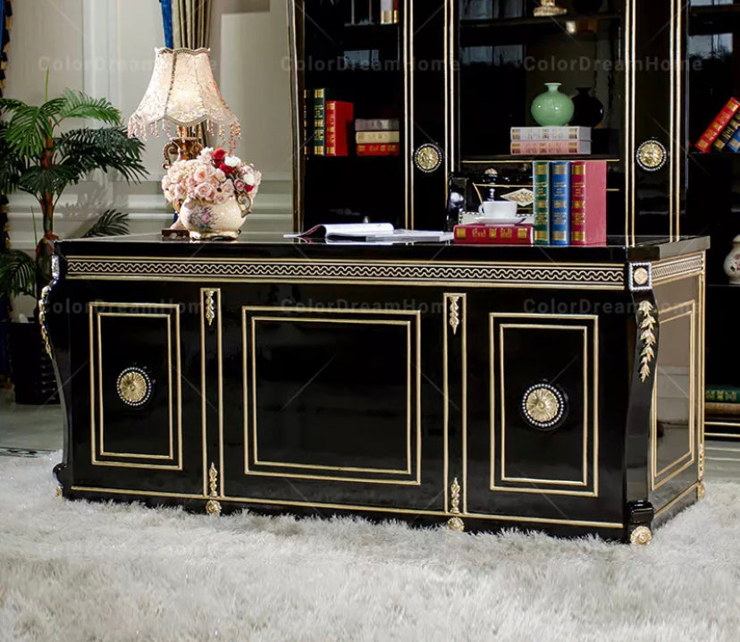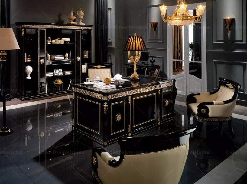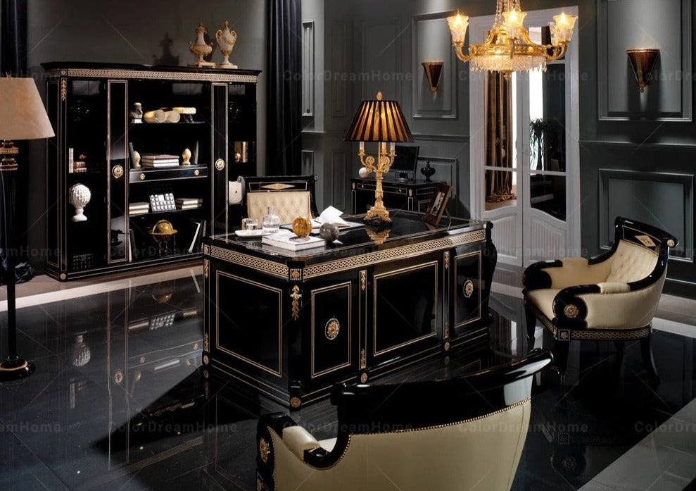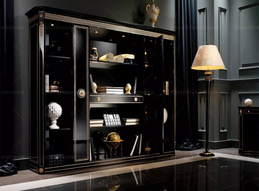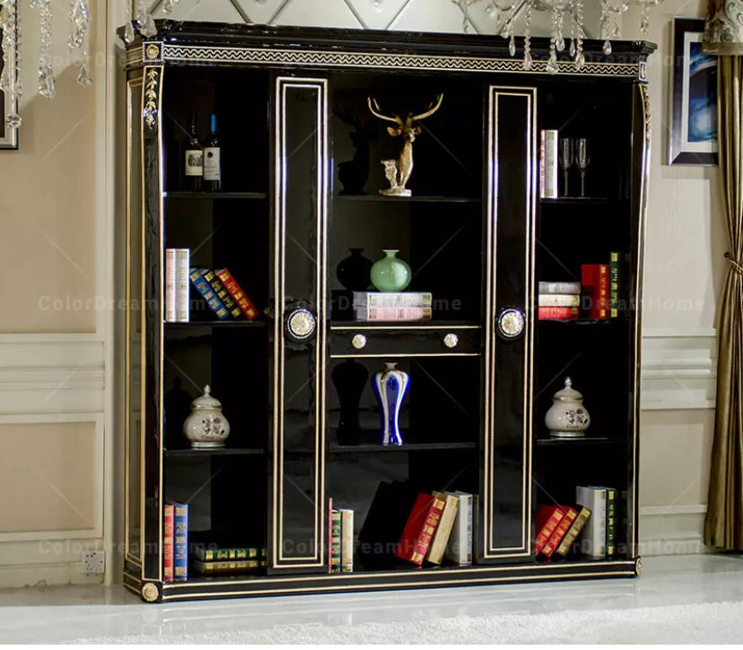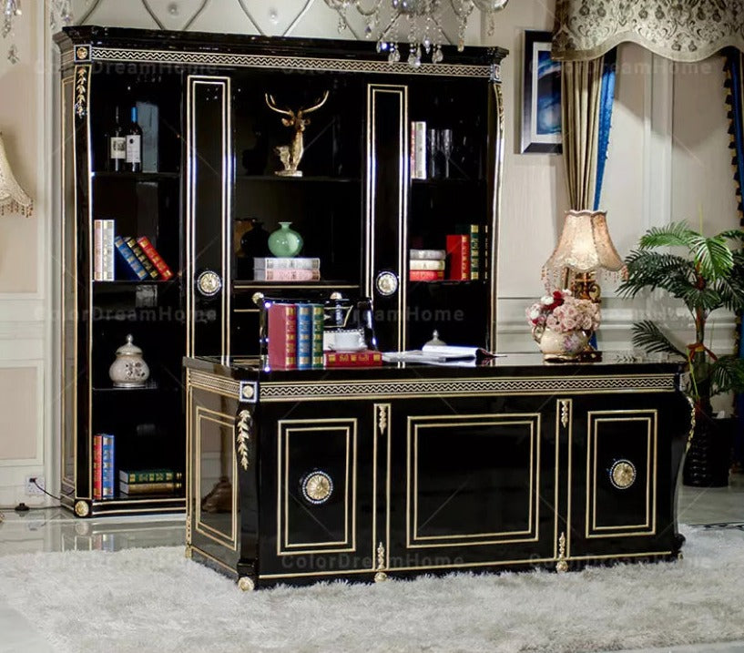 Office Design Furniture French Book Shelf Classic Luxury Black Wooden Office Design