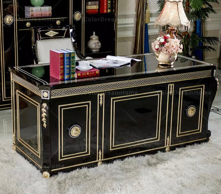 Bring a touch of elegance to your office with ColorHome's ML-VI-015 office design furniture. This luxurious European-style bookshelf is made with solid wood and finished with fine gold leaf and veneer detailing. Comes complete with storage space and customizable size and materials. Includes quality assurance and installation support for comfort and ease.