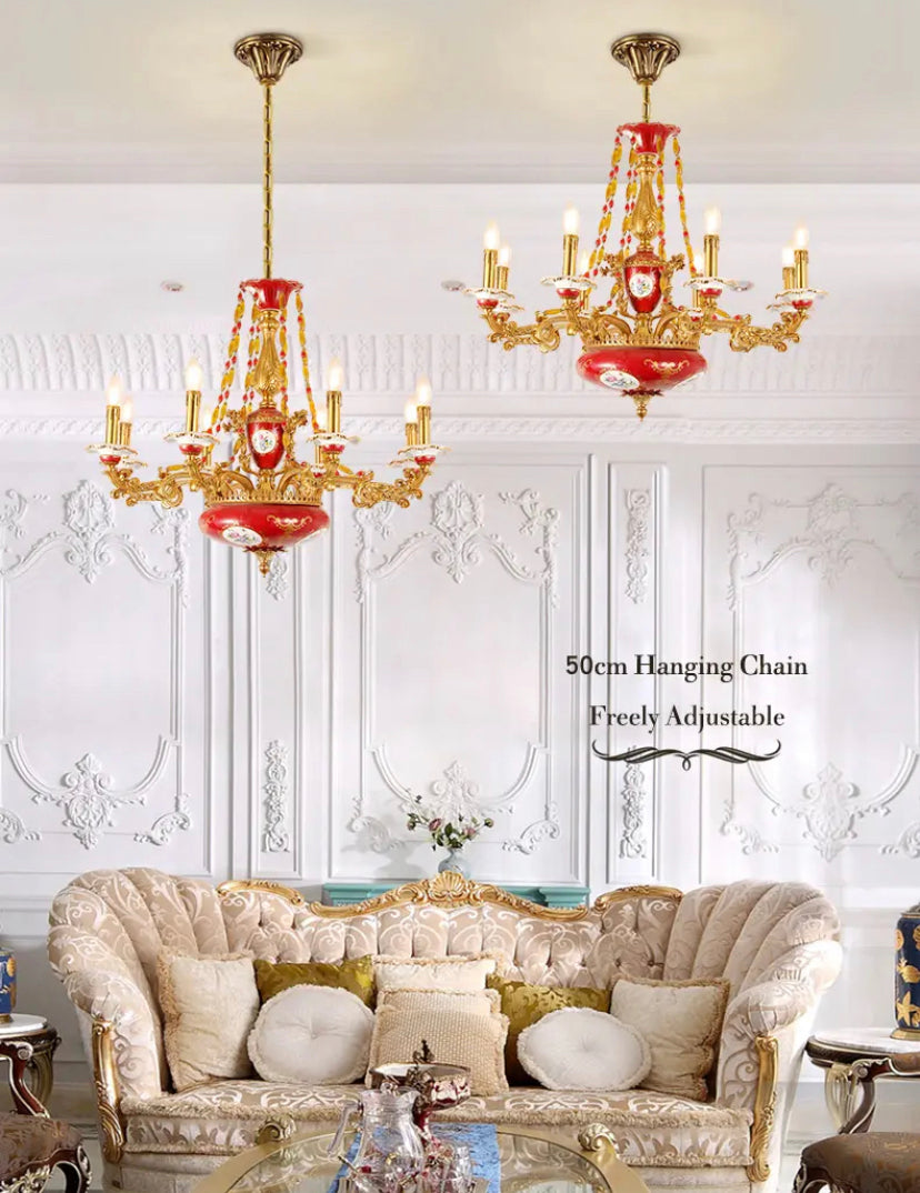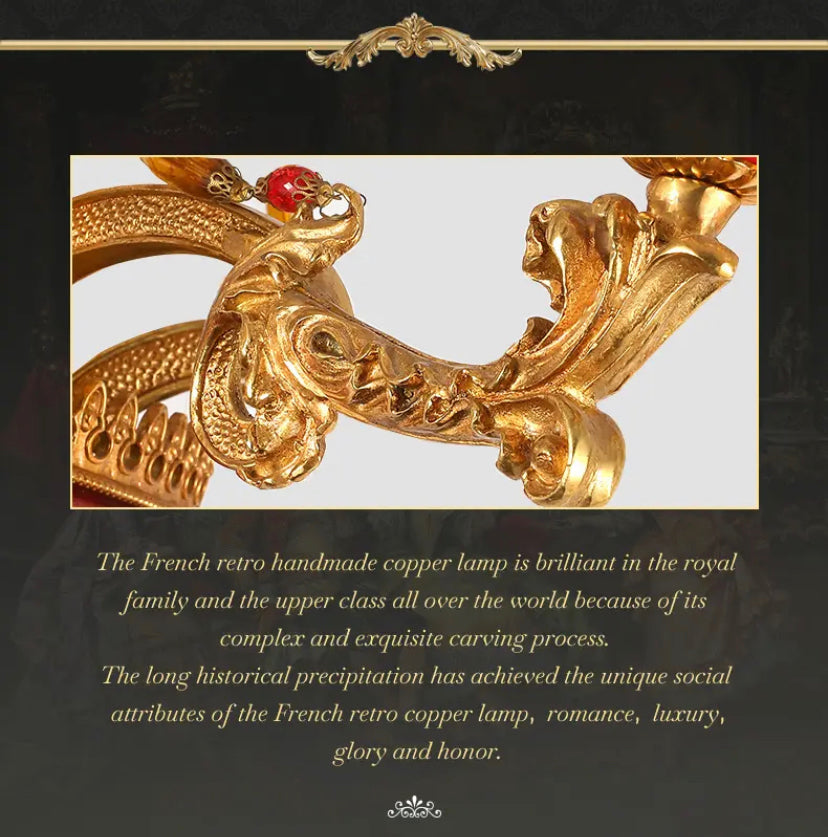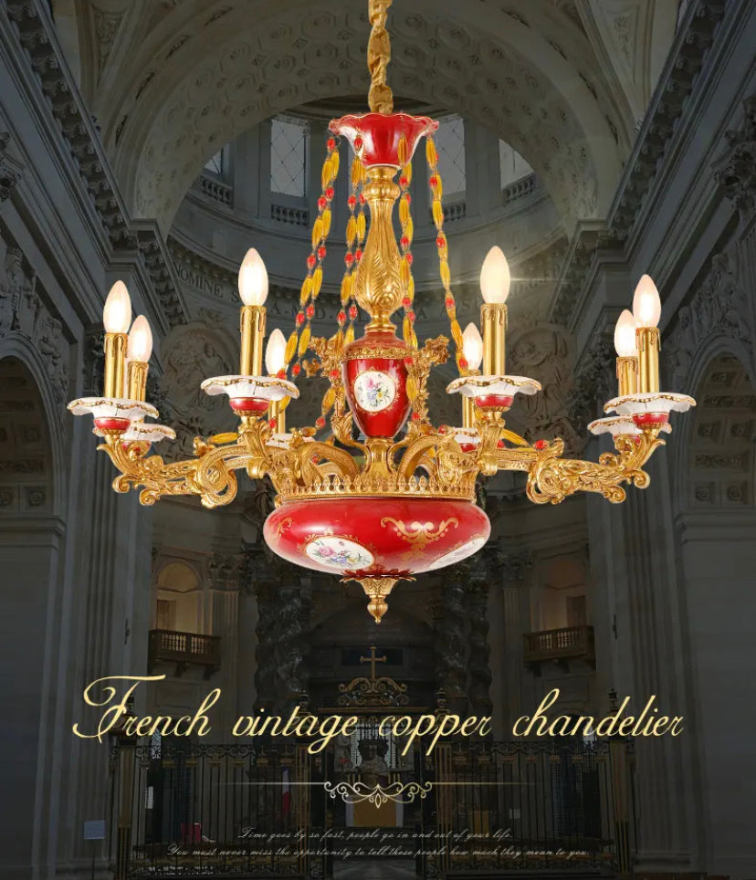 Experience European elegance with our French Vintage Chandelier. This stunning piece features a handcrafted copper body, LED lights for energy efficiency, and a 5-year warranty. With a variety of applications and switch control, it's the perfect addition to any living space, villa, or hotel. Dimensions: 820*670mm.