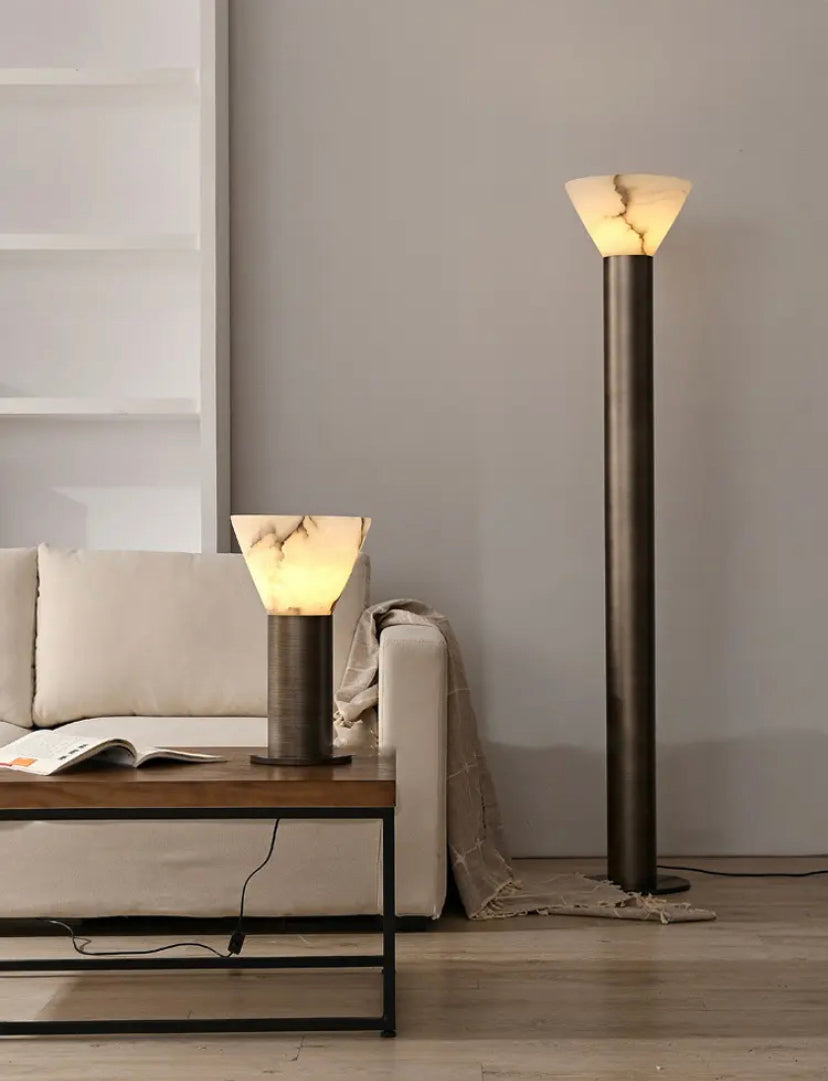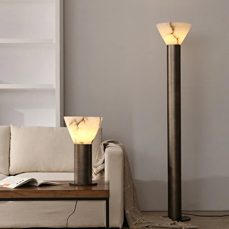 Introducing the Modern Japanese Design Marble Floor Table Lamp, perfect for your living room or balcony. Crafted with Copper, this lamp boasts a 2-year warranty with a lifespan of 30,000 hours. With a warm white LED light source, it offers 180° beam angle and 80 CRI. Elevate your space with this modern and luxurious piece, proudly made in Japan.