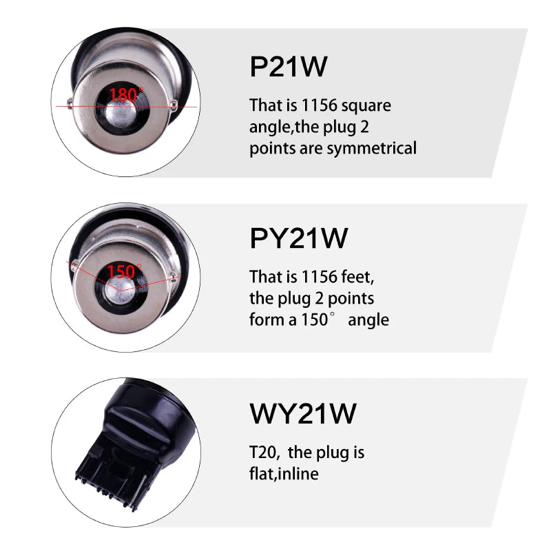 Verify vehicle socket (1156 BA15S, BAU15S, T20, etc.) and CanBus compatibility.