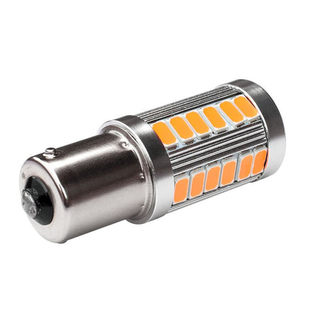 Crafted with a durable aluminum housing, these bulbs ensure excellent heat dissipation and long-lasting performance. The 1156 BA15S base (also compatible with 7506, P21W) fits most vehicles, making installation quick and straightforward. Perfect for replacing dim halogen bulbs, these LEDs offer energy-efficient, high-intensity light for clearer signaling and reversing. Note: Some modified turn signal setups may require a load resistor decoder to prevent rapid flashing.