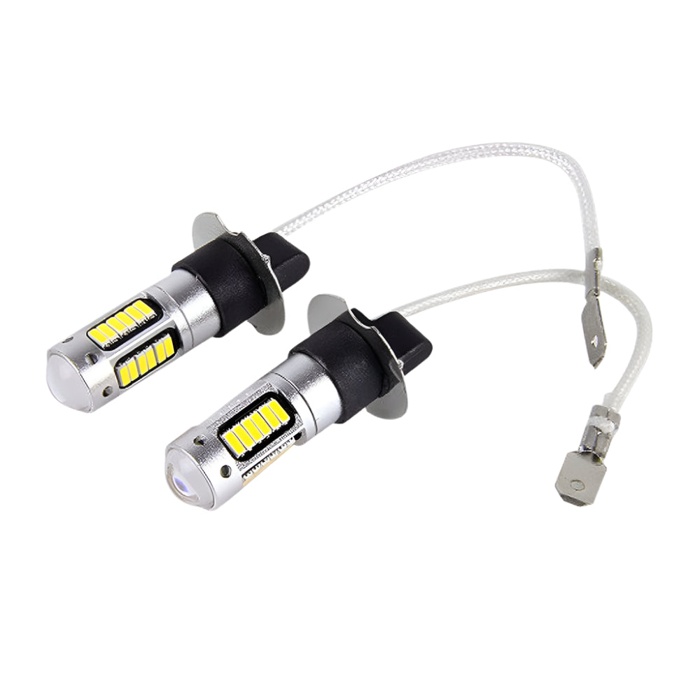 Orelli Lightings 2-Piece H3 H1 T10 W5W White LED Fog Light Bulbs, 30-SMD 4014 High Power 6000K, DC 12V