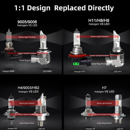 Versatile Fit: H4/H7/H11/H8/H9/9005/9006/H16 for headlights or fog lights.