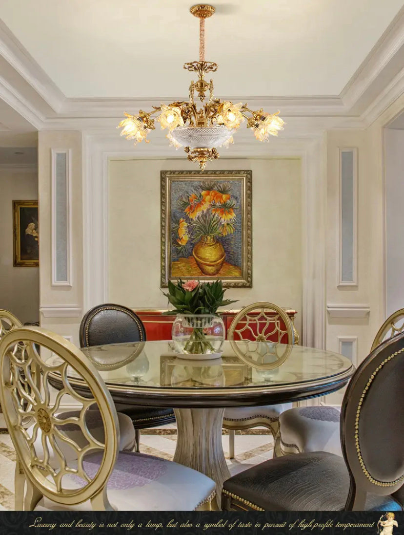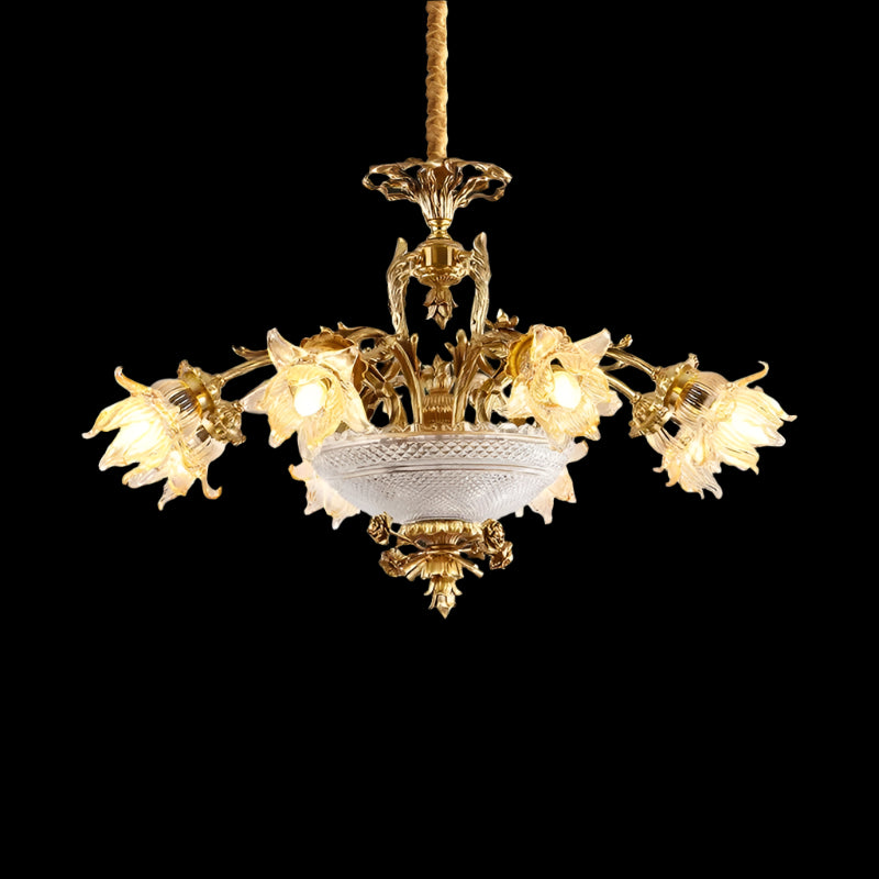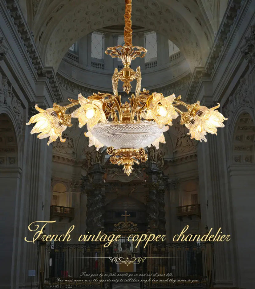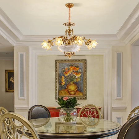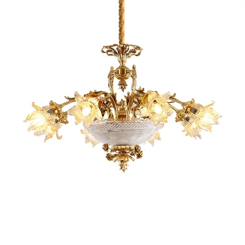 European Antique Design Chandelier Led Glass Brass Lampshade Indoor Bedroom Living Dining Room Chandeliers