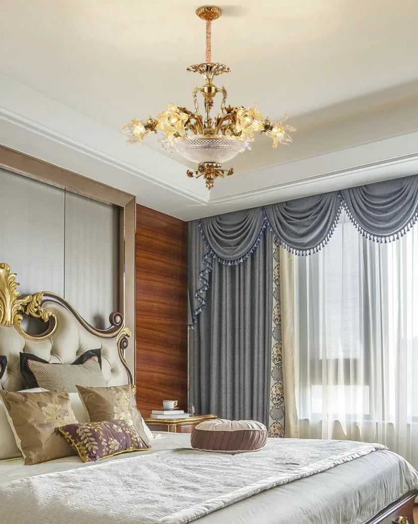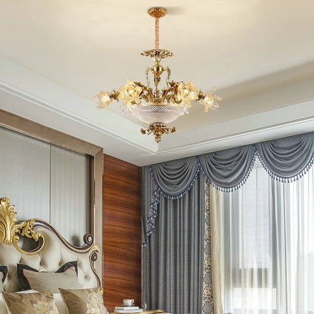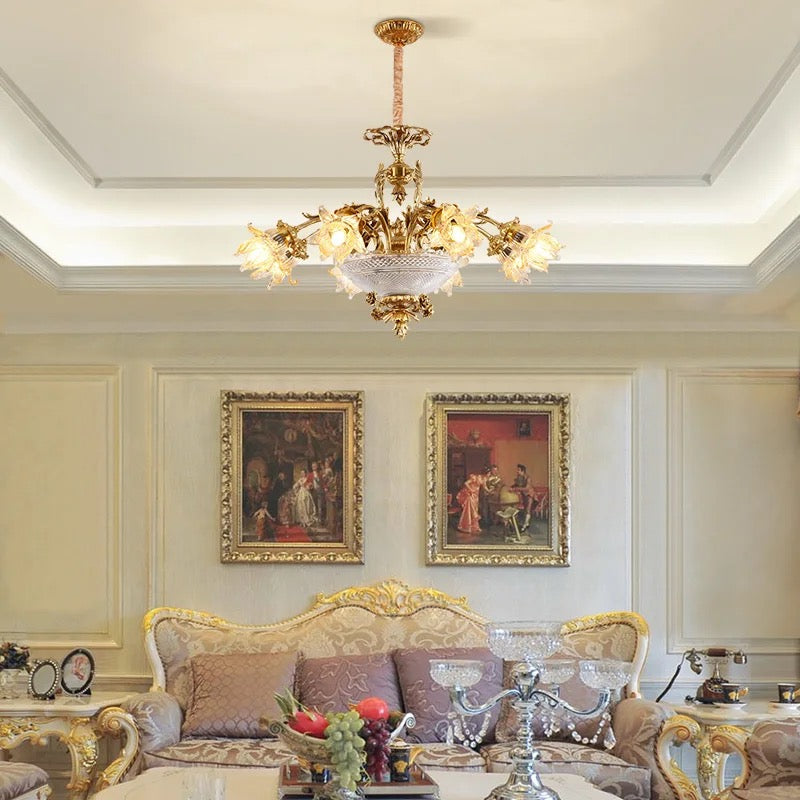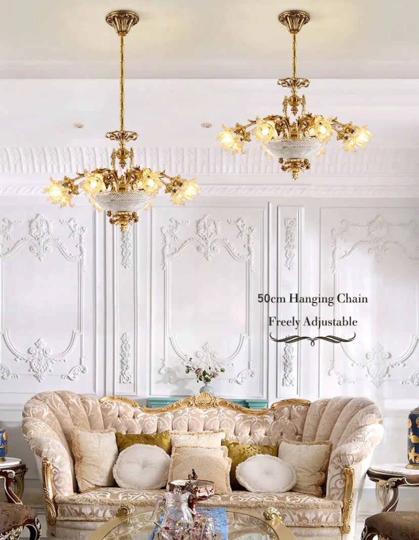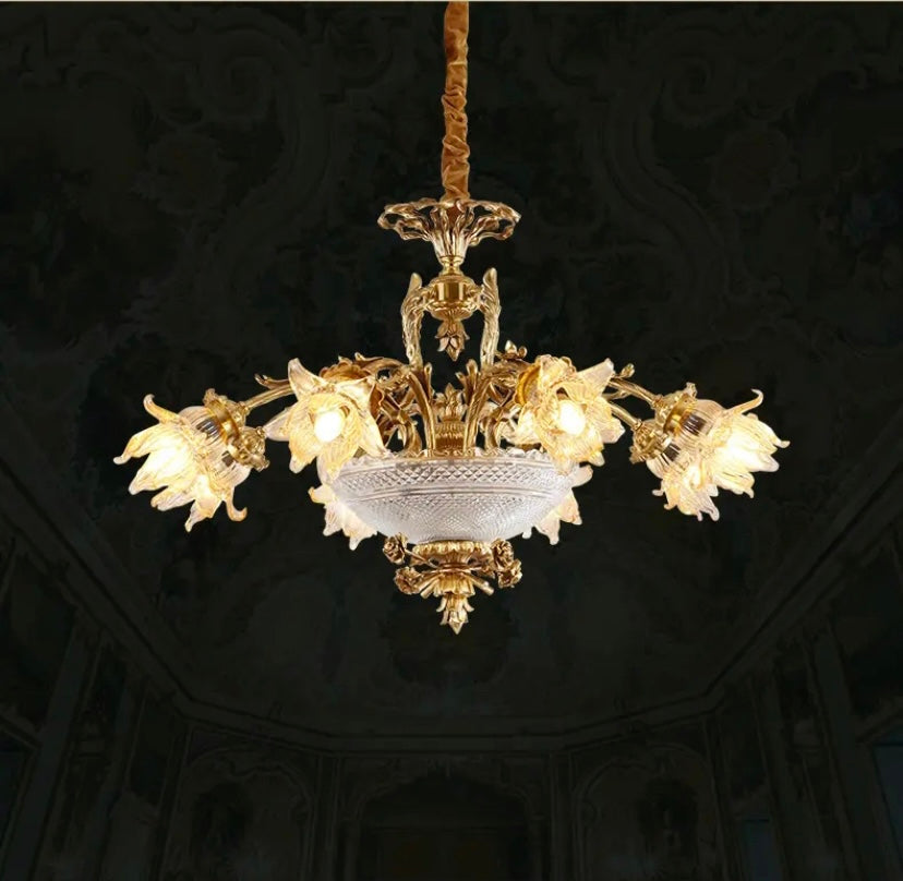 European Antique Design Chandelier Led Glass Brass Lampshade Indoor Bedroom Living Dining Room Chandeliers