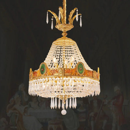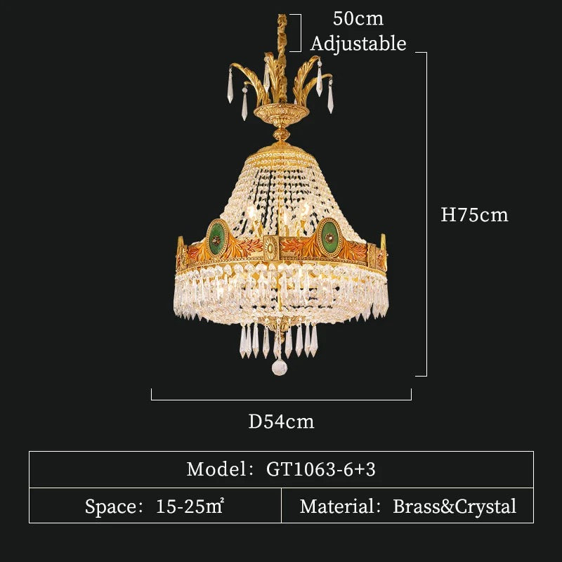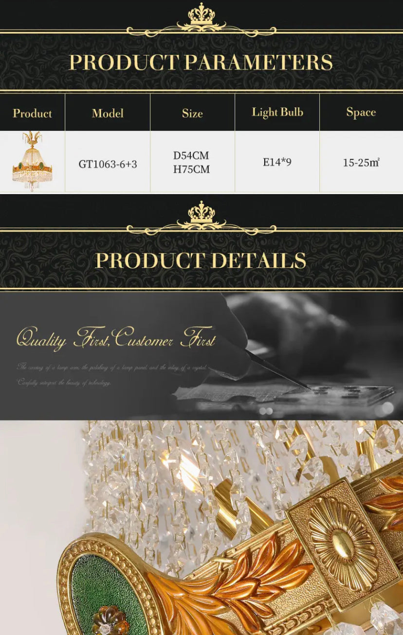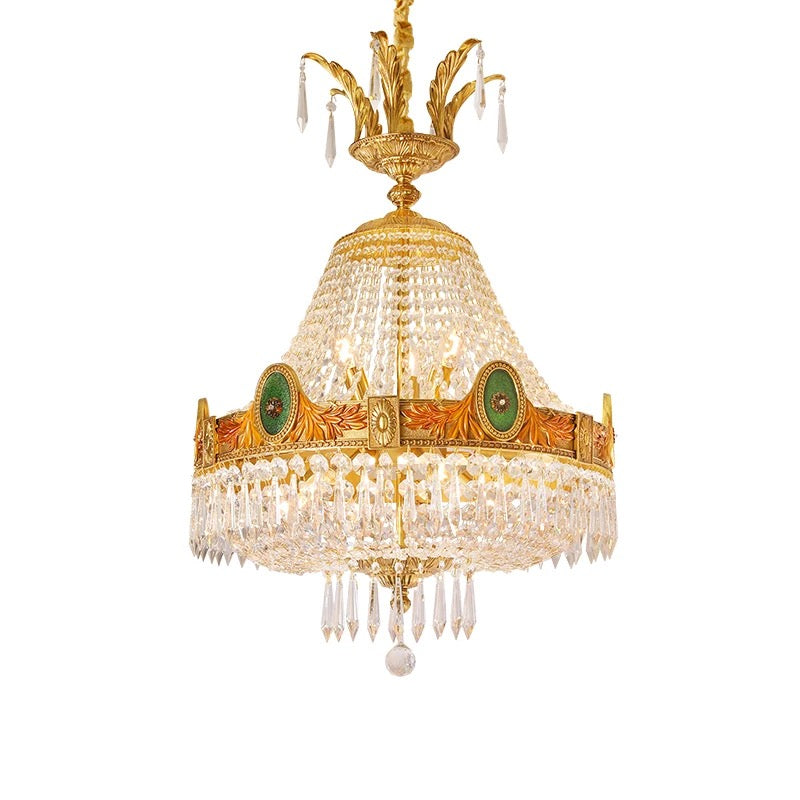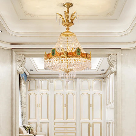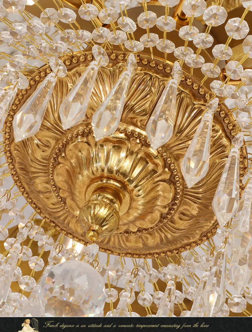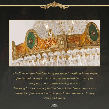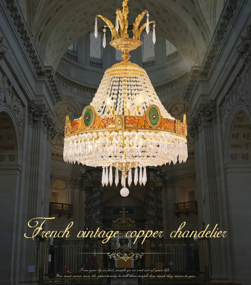 Illuminate your home with the elegant European French style of our chandelier pendant light. Made with premium copper and sparkling crystal, it adds a touch of luxury to any living room, dining room, or study. With a 4-year warranty and LED bulbs, it's a timeless lighting solution for your home.