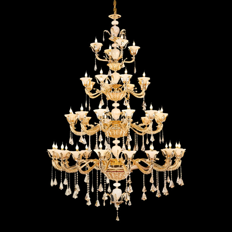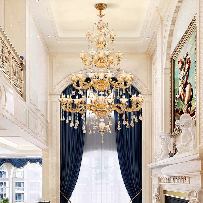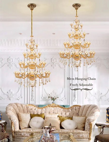 European Indoor Crystal Chandelier Full Copper Living Room Dining Room Staircase Lobby Pendant Chandeliers