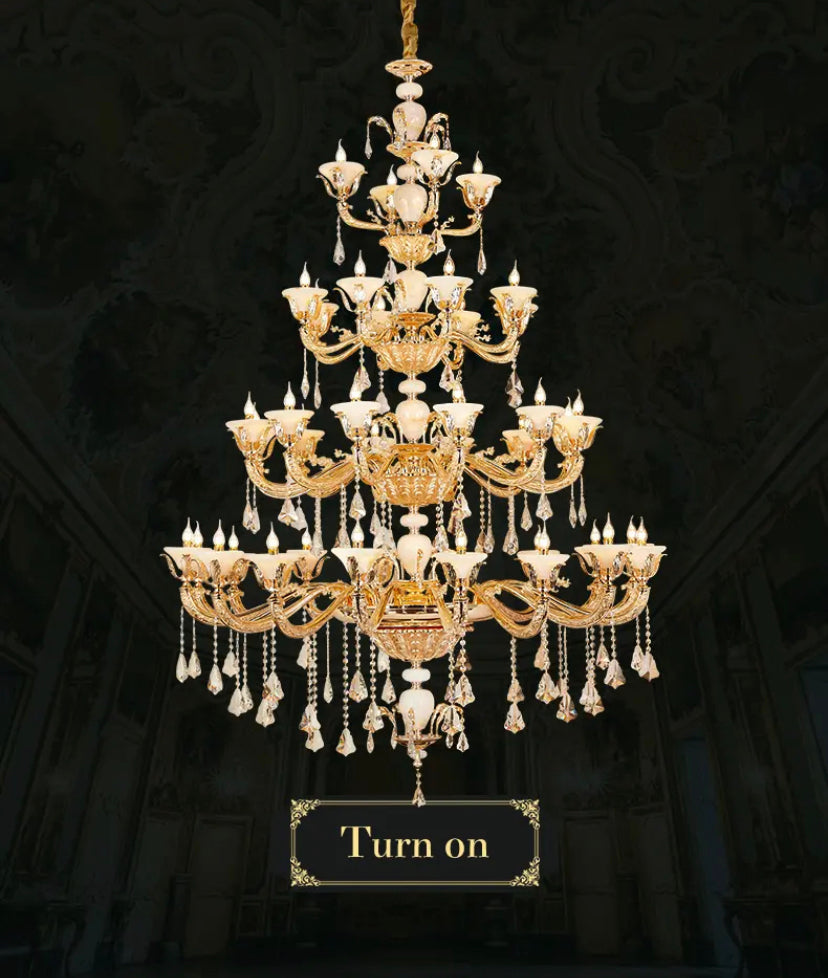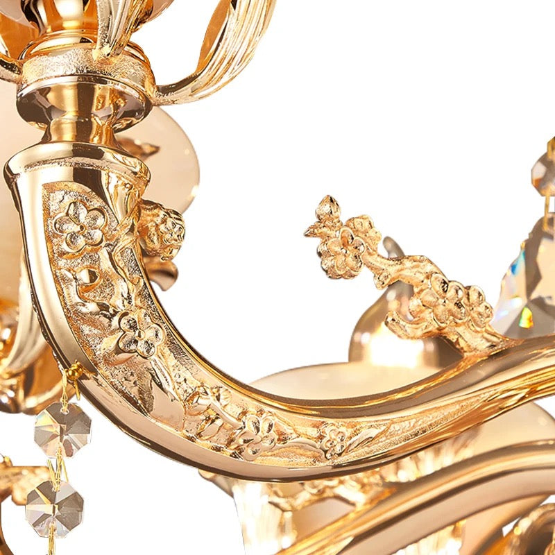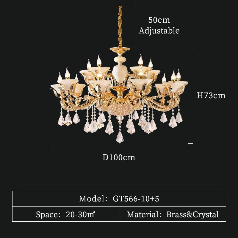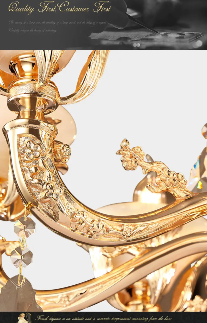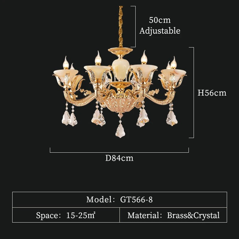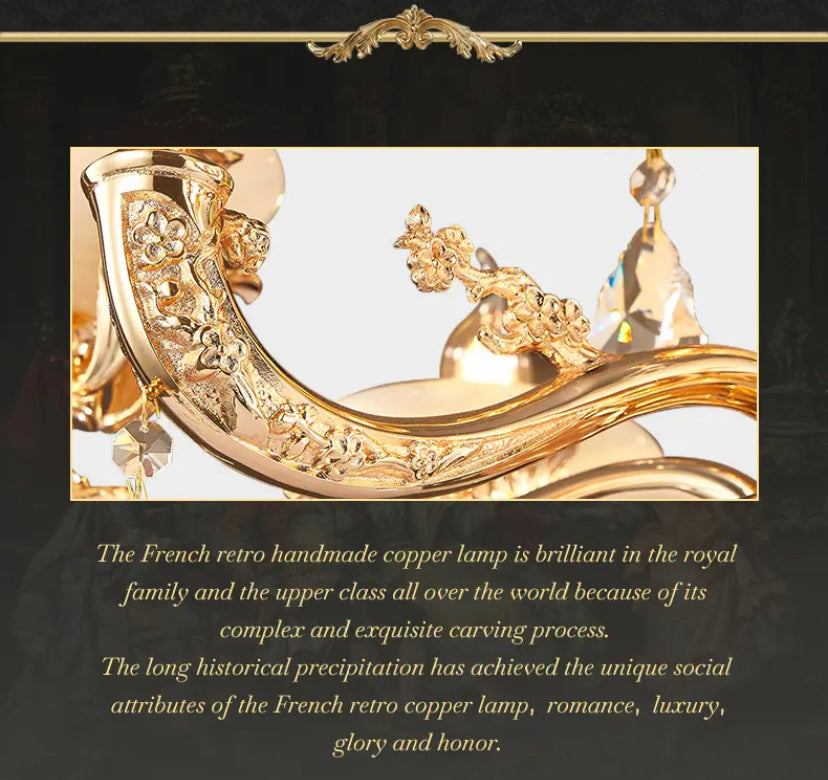 Elevate your space with the elegant European style of the Full Copper Crystal Chandelier. Perfect for living rooms, villas, apartments, and hotels, this chandelier adds a touch of luxury with its crystal shade and copper body. With a 4-year warranty, LED lighting, and modern design, it's an expert lighting solution for your space.