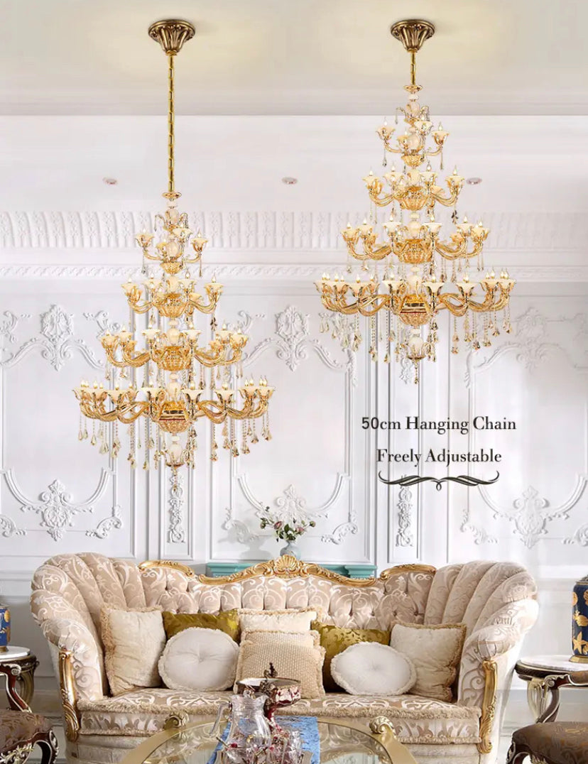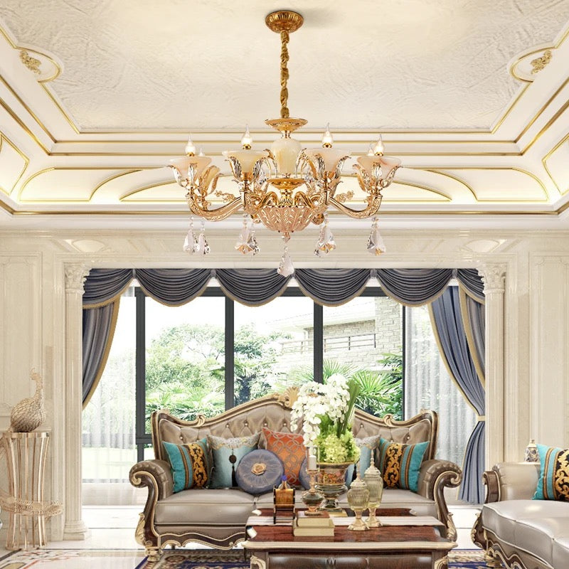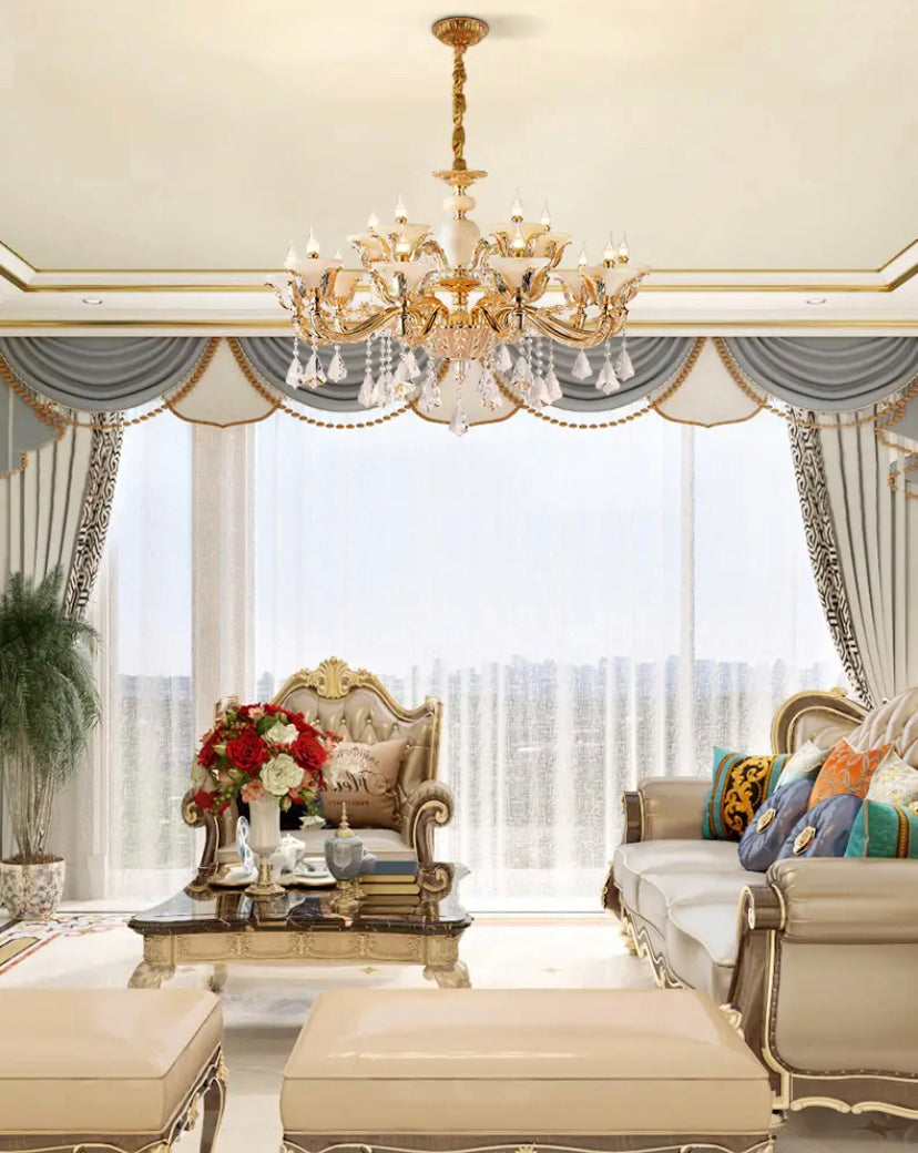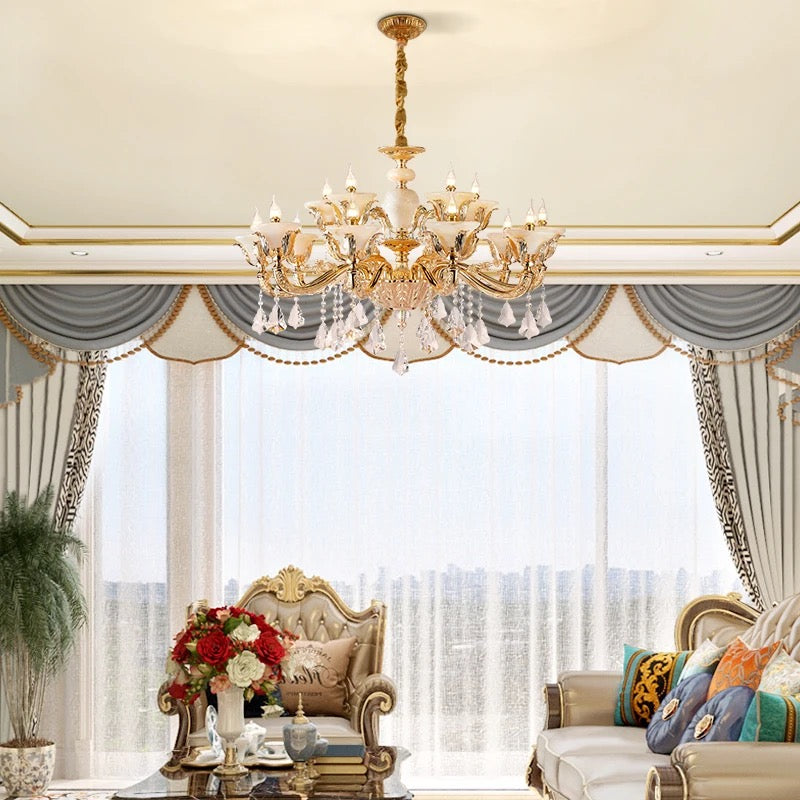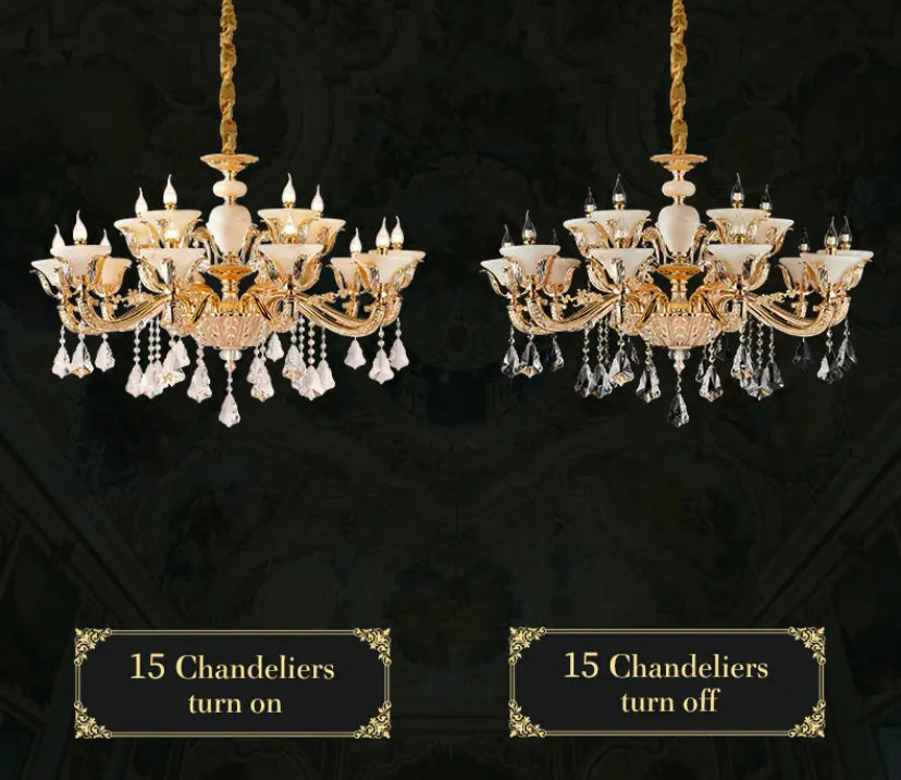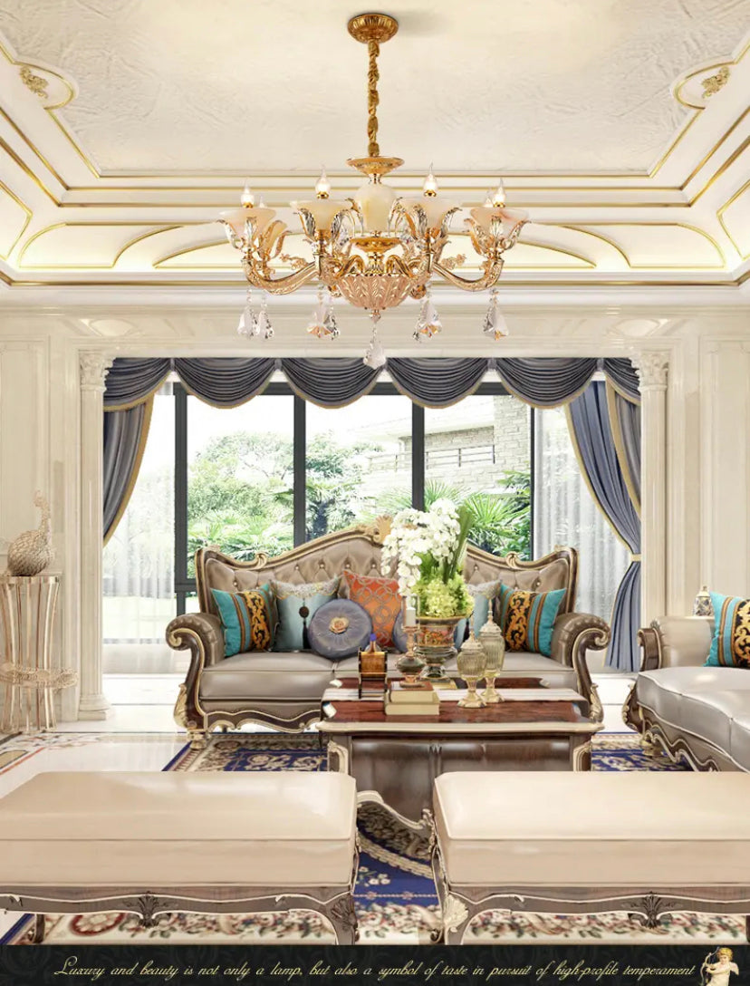 Elevate your space with the elegant European style of the Full Copper Crystal Chandelier. Perfect for living rooms, villas, apartments, and hotels, this chandelier adds a touch of luxury with its crystal shade and copper body. With a 4-year warranty, LED lighting, and modern design, it's an expert lighting solution for your space.