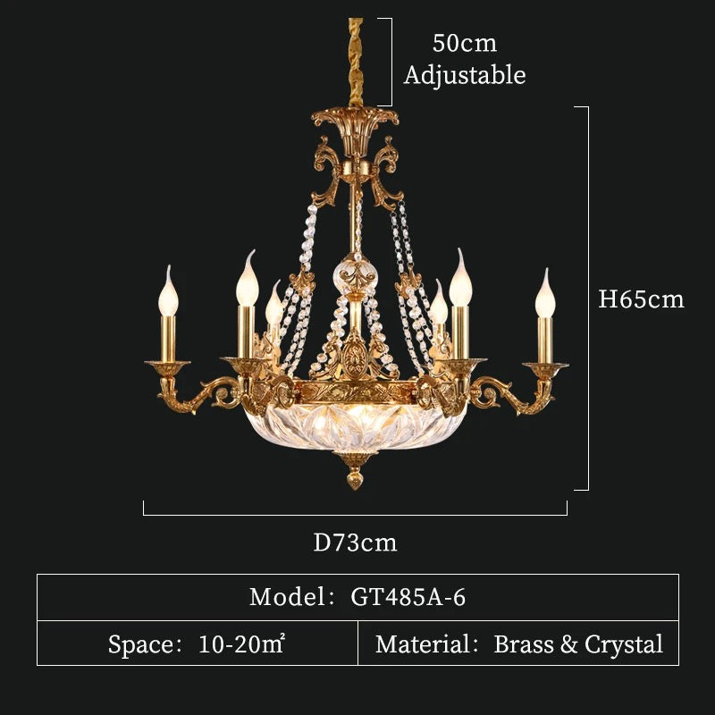 French Baroque Designer Chandelier Brass Crystal Indoor Living Room Bedroom Chandeliers