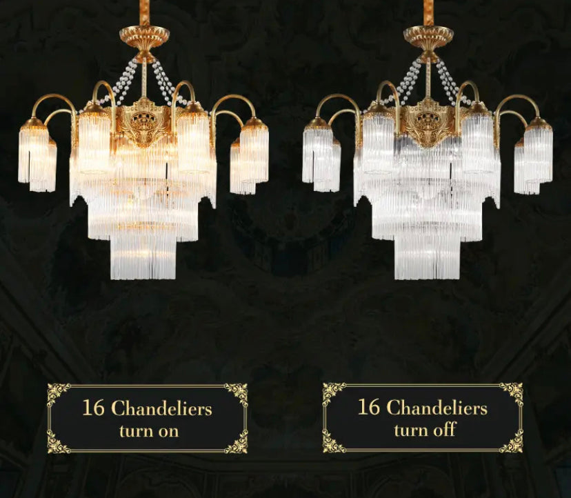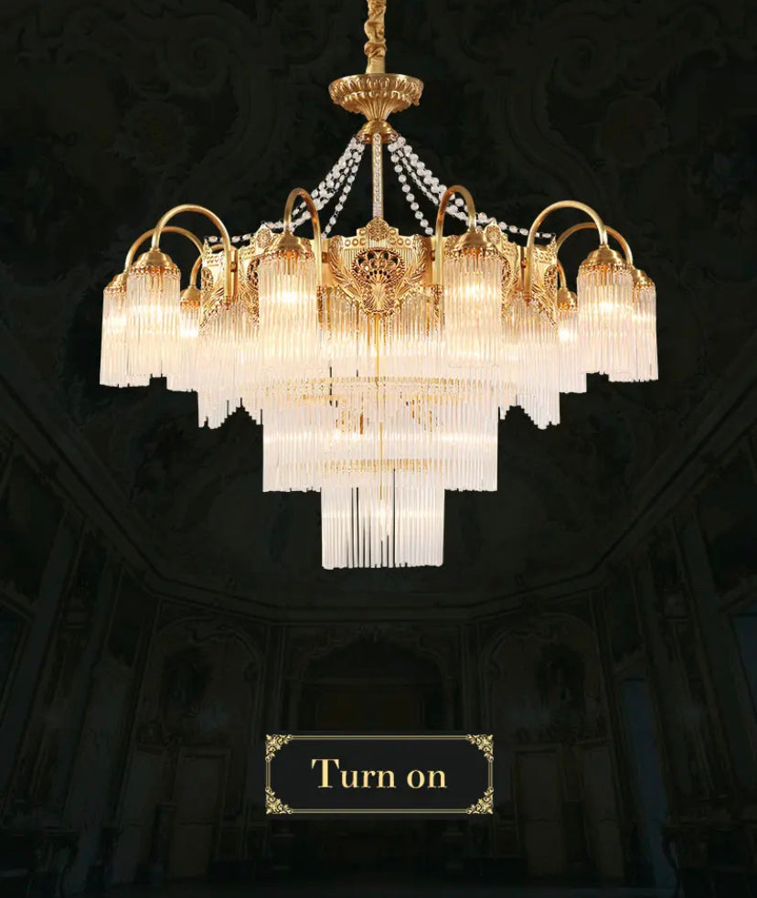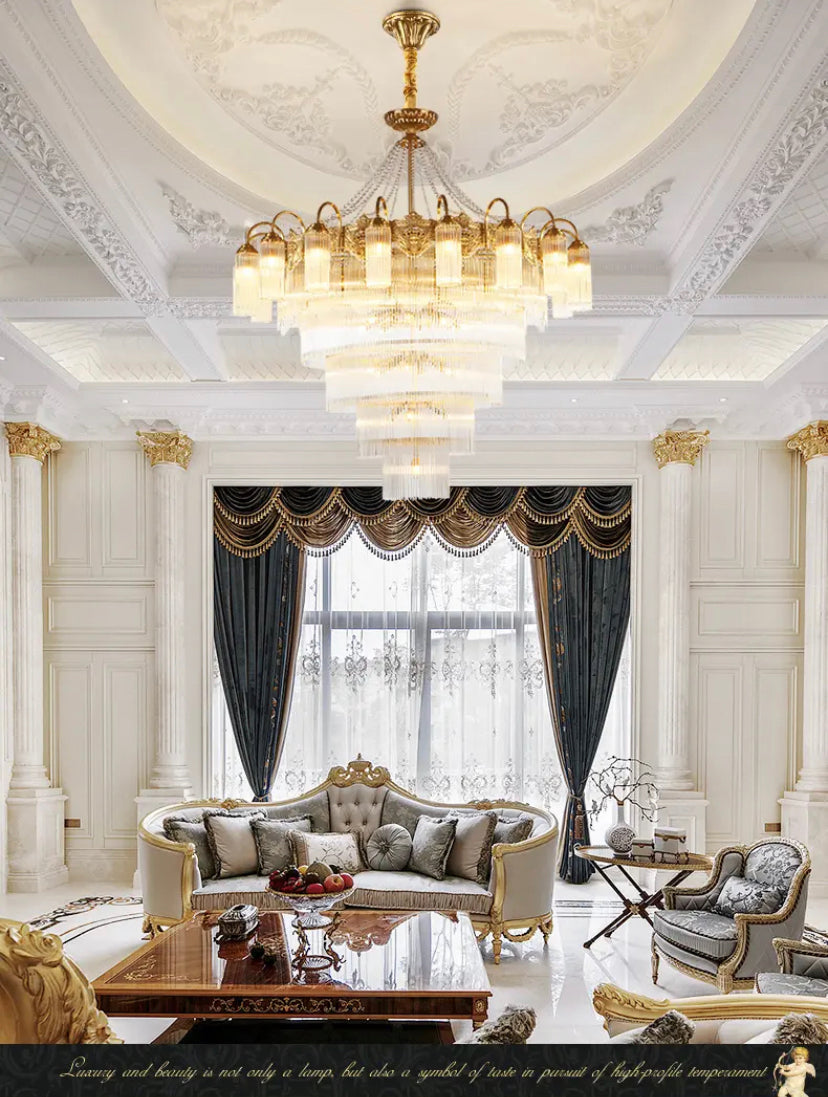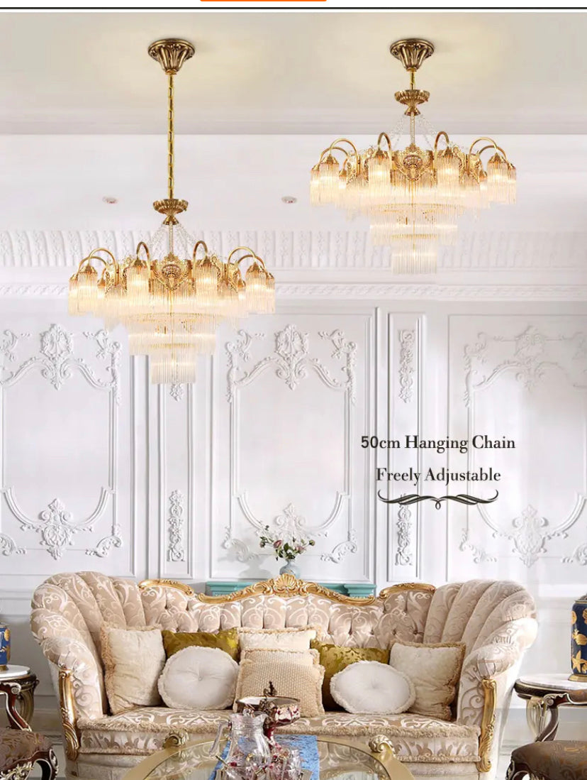 Transform your living space into a luxurious European villa with our Italian Living Room Luxury Brass Chandelier. Exquisitely designed with copper body and crystal shades, this chandelier adds elegance to any home or office. Enjoy the benefits of energy-efficient LED lighting and a 4-year warranty. Assembled in France for top-notch quality.