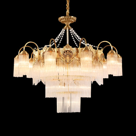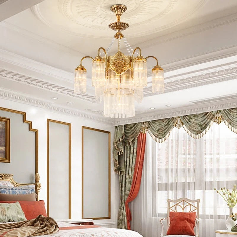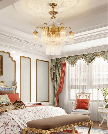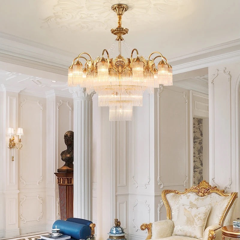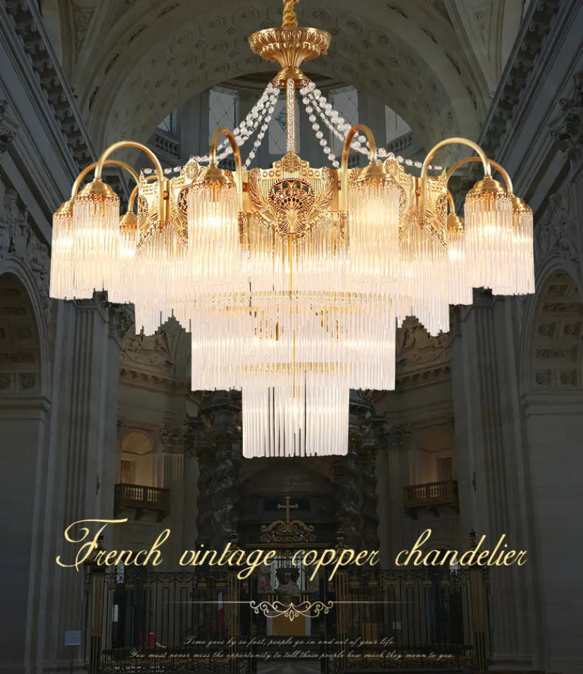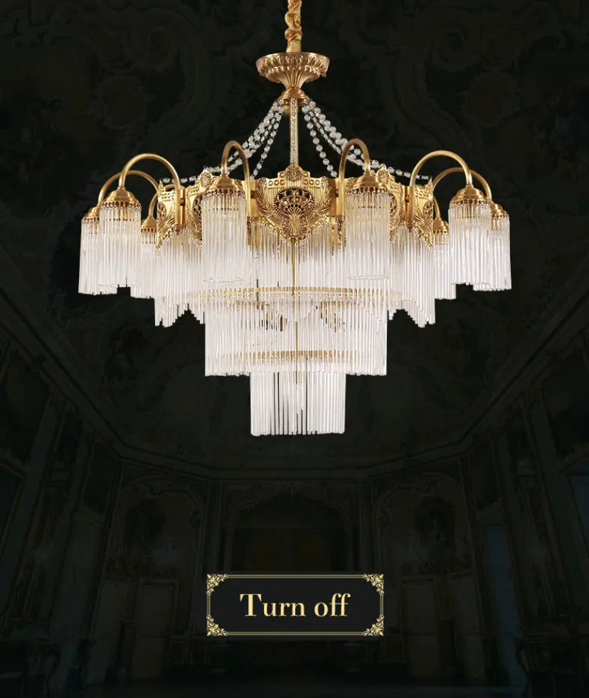 Transform your living space into a luxurious European villa with our Italian Living Room Luxury Brass Chandelier. Exquisitely designed with copper body and crystal shades, this chandelier adds elegance to any home or office. Enjoy the benefits of energy-efficient LED lighting and a 4-year warranty. Assembled in France for top-notch quality.