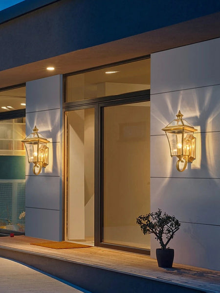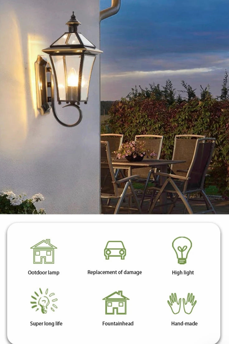 Mejore el ambiente de su hotel, apartamento, villa o jardín con el aplique de lujo para exteriores Modern Sconces. Este diseño vintage presenta un cuerpo de cobre y una fuente de luz LED para ahorrar energía. Se encuentran disponibles servicios de dibujo y diseño de iluminación, iluminación de proyectos e instalación. Control por interruptor o sensor y opciones regulables. 2 años de garantía.