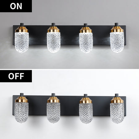 Orelli Lightings 4-Light LED Vanity Light, Matte Black Glass, Modern Bathroom