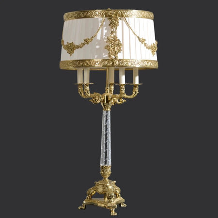 Add a touch of luxury to your home with our Vintage European Desk Lamp. Crafted from bronze and featuring a brass and cloth shade, this lamp exudes elegance. With a 4-year warranty and LED light source, it offers long-lasting use and energy efficiency. Perfect for indoor decor, it will elevate any room with its classic crystal details.