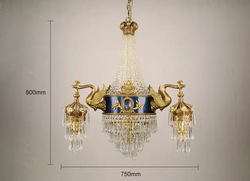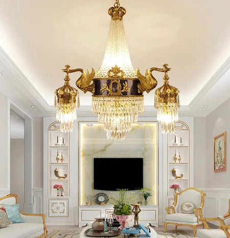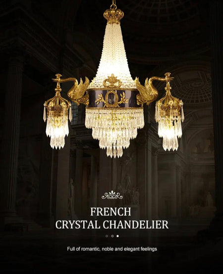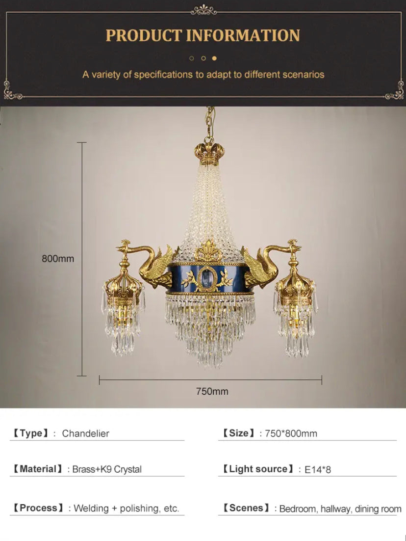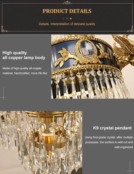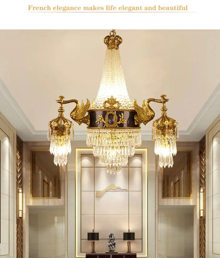 Vintage Living Room Stairs Foyer Copper Pendant Light French Style Led Crystal Brass Chandelier