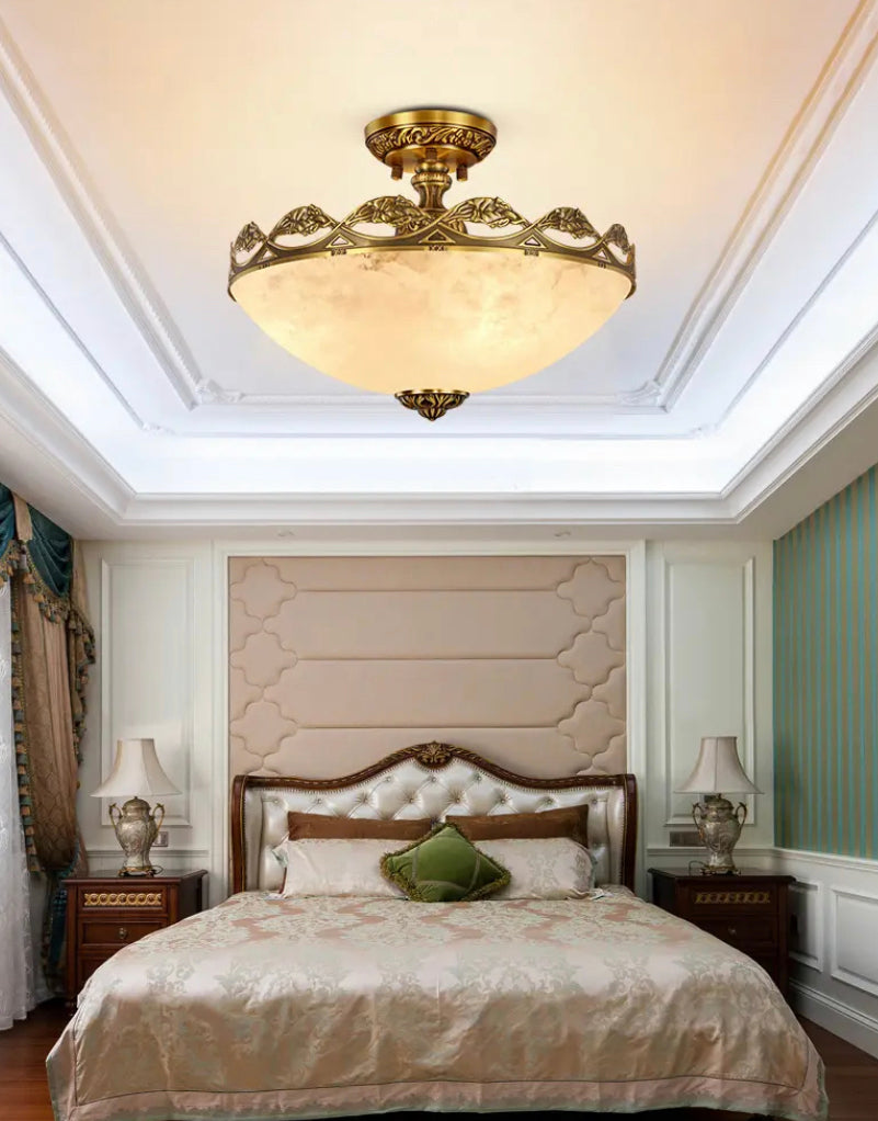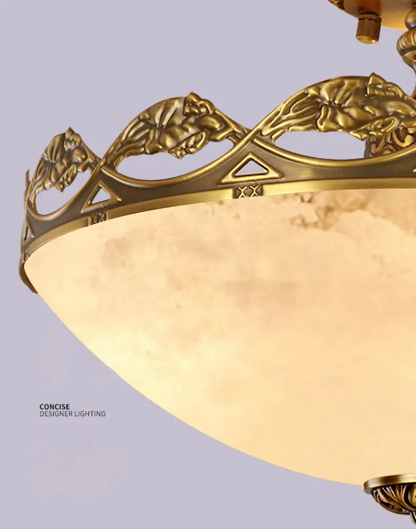 Introducing the Modern Ceiling Light Luxury Spanish Marble Lamp. This stunning piece features a modern design style, all copper and marble construction, and LED light source. With a 2-year warranty and a lifespan of 50,000 hours, this lamp brings both style and longevity to any living space. Perfect for project lighting design needs.