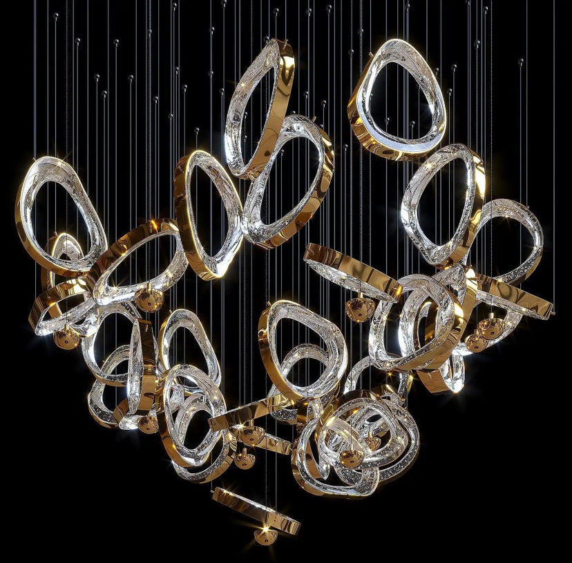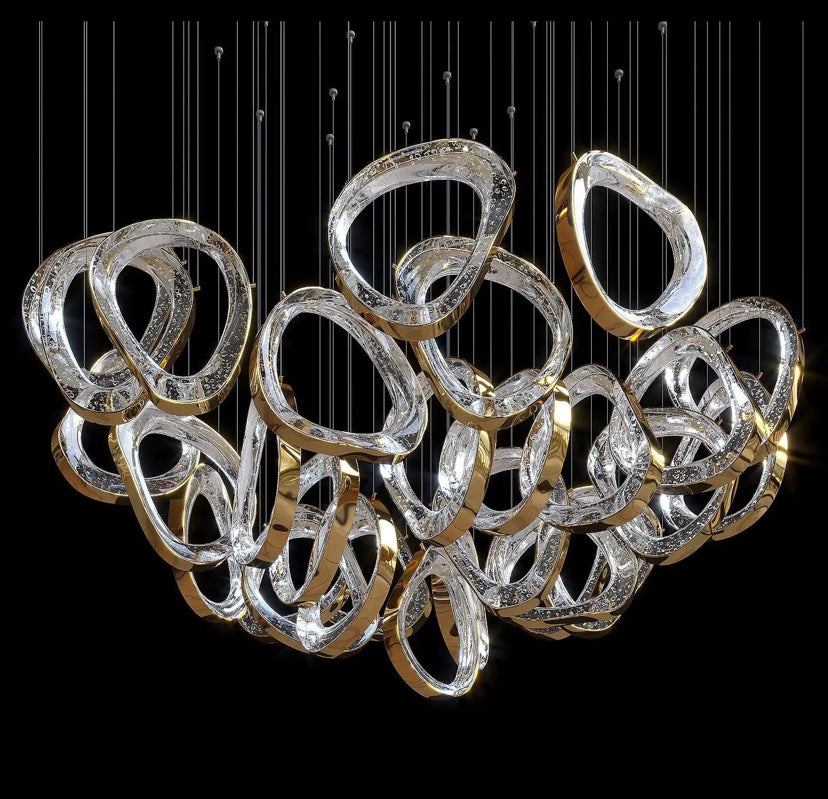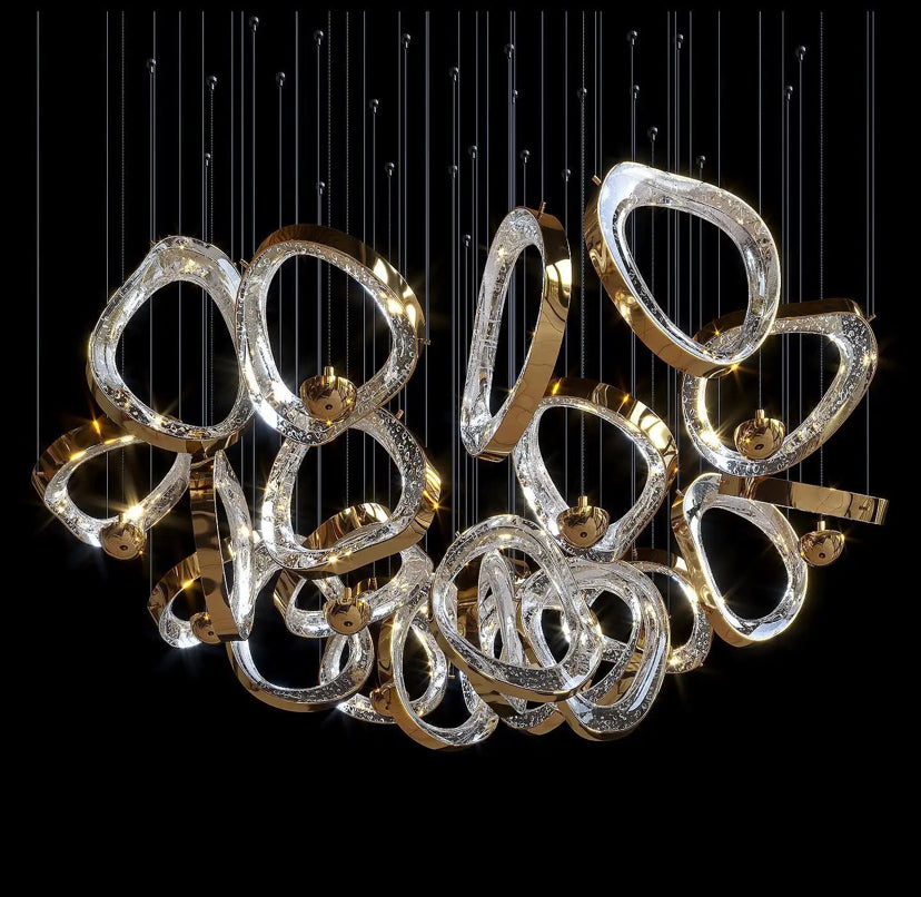 Modern Staircase Living Room Pendant Lights Indoor Home Hotel Golden Hanging Luxury Chandeliers