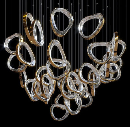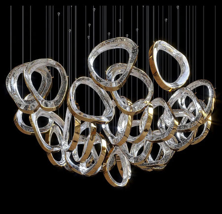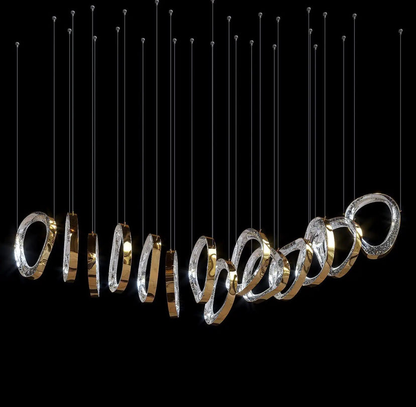 Add a touch of luxury to your living space with our Modern Staircase Pendant Lights. Made with high-quality stainless steel and acrylic materials, these lights offer a 5-year warranty and a long lifespan of up to 50,000 hours. With customizable size and color options, these chandeliers are perfect for hotel lobbies and home use. Enjoy modern, switch-controlled lighting with a wide beam angle and excellent color rendering. Trust the expert craftsmanship of OL. VOGUE, assembled in Germany.