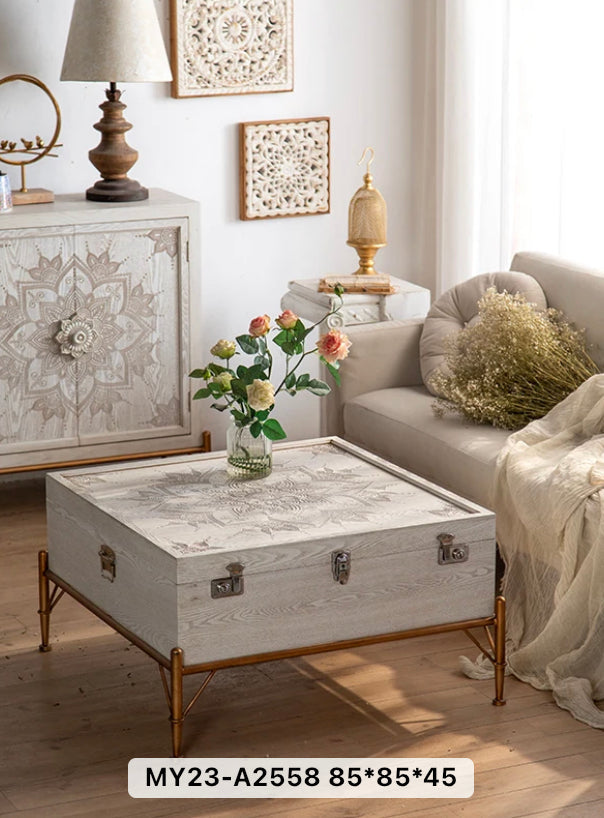 Elevate your living room with the Nordic Designer Modern French Coffee and Tea Table. Made with solid wood and iron, this retro accent piece is both stylish and durable. Assembled and packed carefully, this luxury table is perfect for a contemporary home, hotel, or apartment farmhouse. Available in an elegant French design.