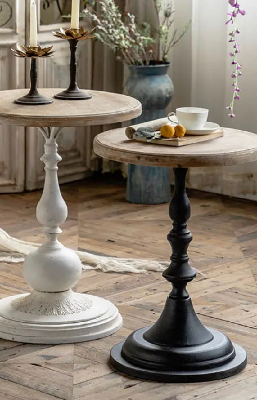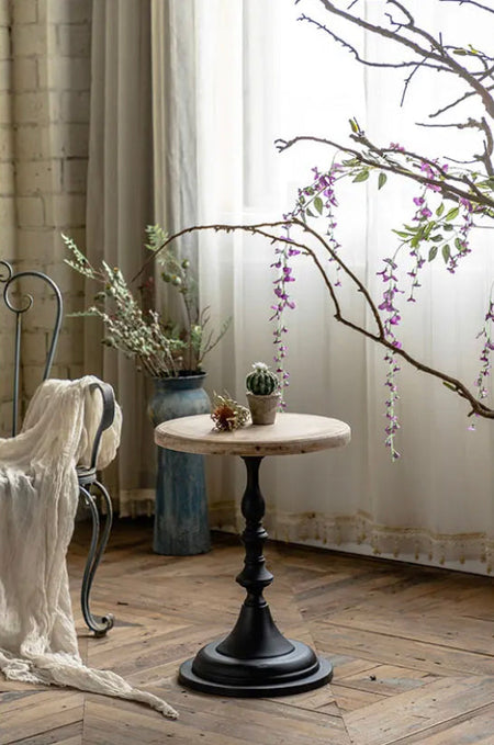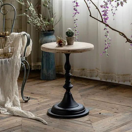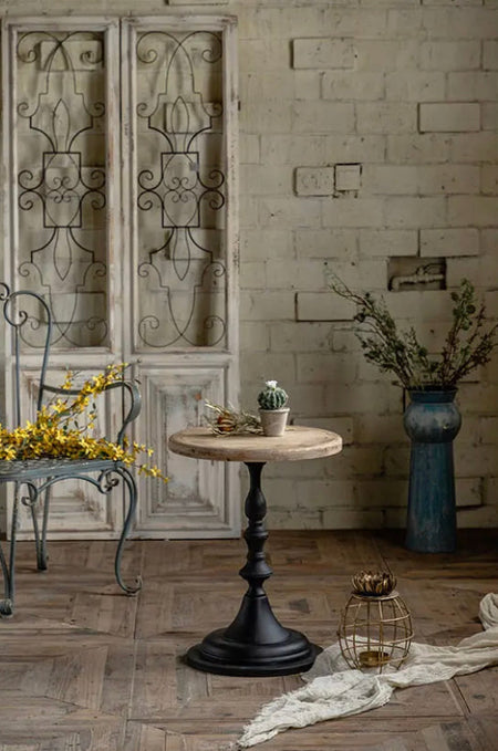 Scandinavian Living Room Furniture Accent Table Round Antique Side Corner Natural Wood Iron Coffee Tea Table