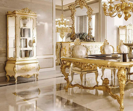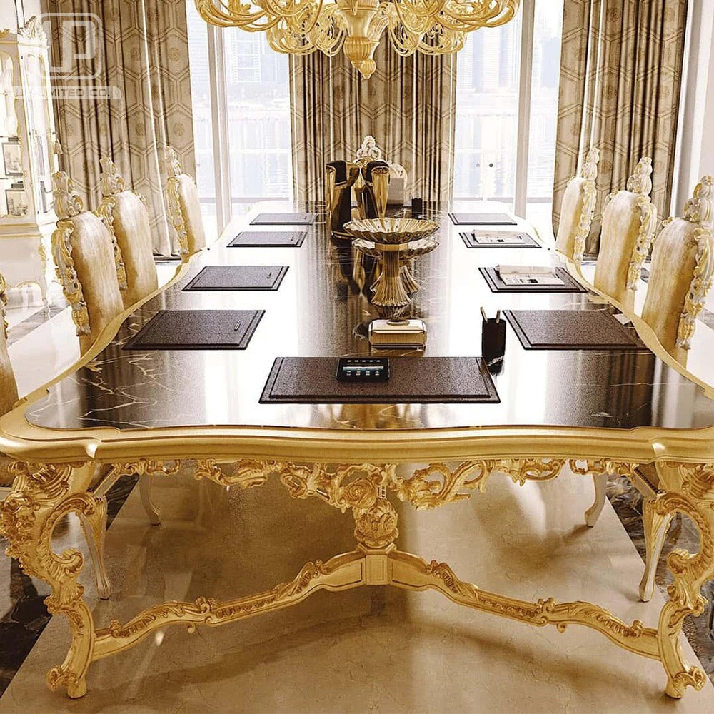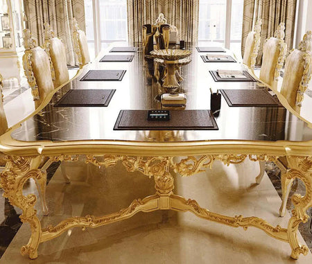 This Neoclassical Luxury Solid Wood Hand Carved Large Dining Table Set is a timeless piece of furniture with superior craftsmanship. High-quality Birch wood ensures durability and adjustable height makes it perfect for any space. The detailed carving and modern design add elegance to the dining room. The Marble tabletop is perfect for every occasion to impress your guests. Assembled in Germany, this table is shipped in 5-layer export standard cartons for long-term protection.