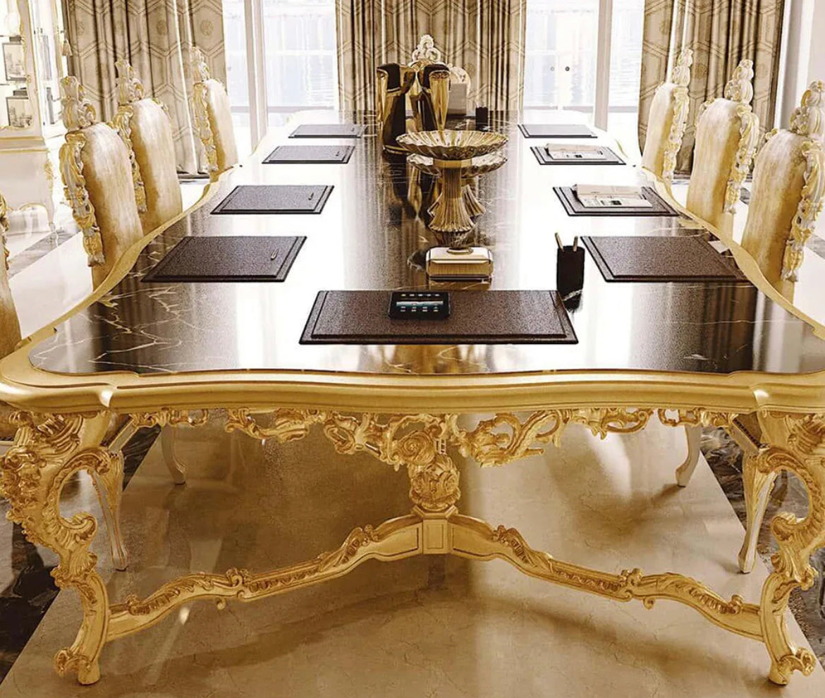 Barock Dining Table Set Solid Wood Hand Carved Large Neoclassical Baroque Design Luxury Dining Table