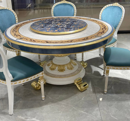 The perfect centerpiece for any dinning room, this European classic dinning room set from KENVY is crafted from luxurious wood and painted with a classic Baroque Antique finish. Assembled and manufactured in Germany to the highest standard, this set comes with adjustable features for comfortable use. The perfect addition to any kitchen, home office, living room, dining, hotel, apartment, or villa.