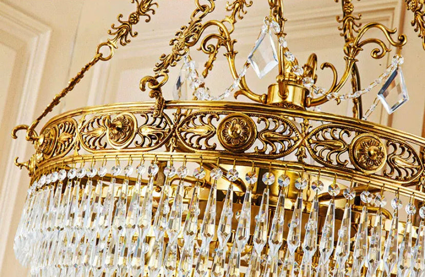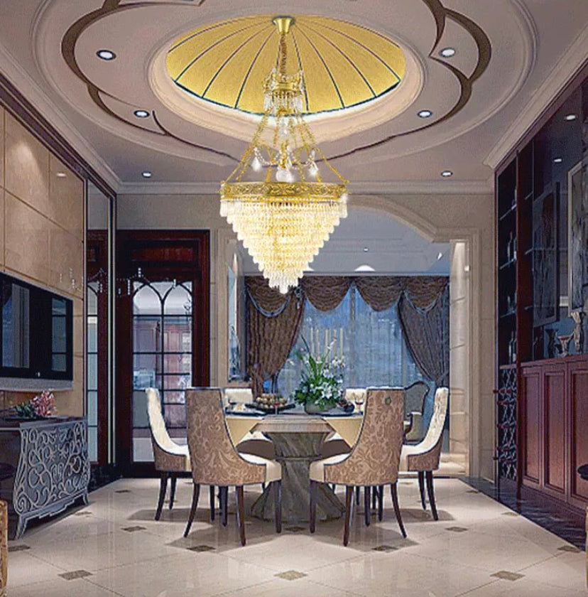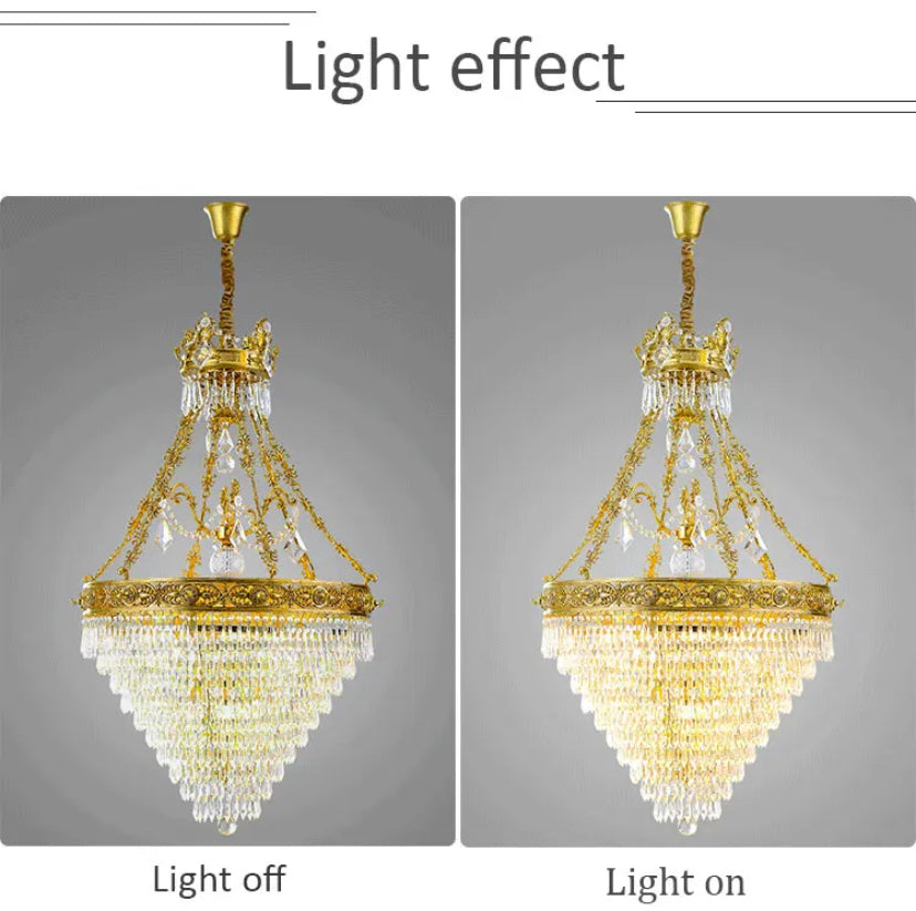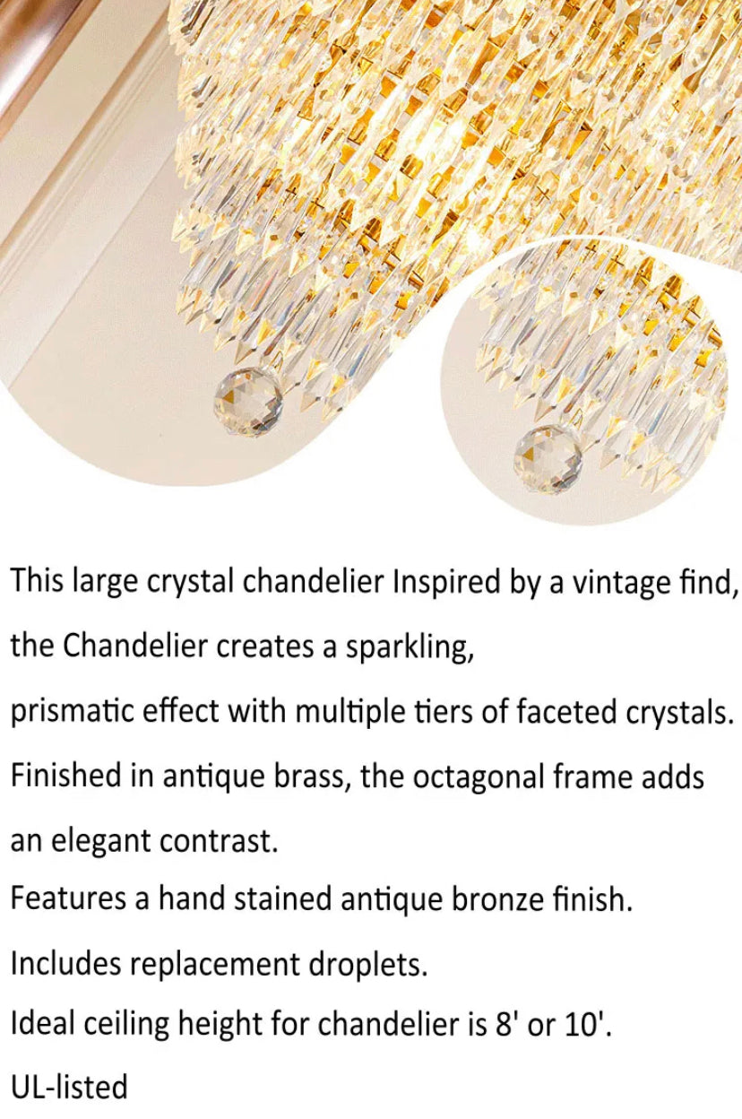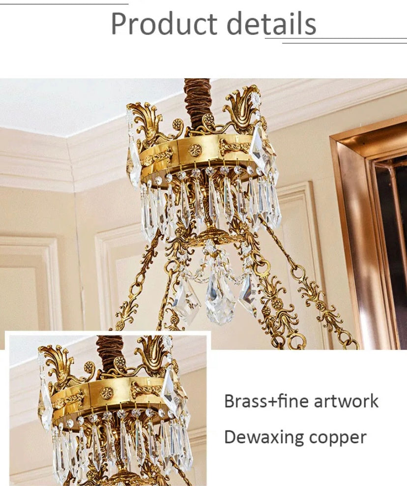 Big Chandelier Midcentury Brass Flush Mount Living Room, Foyer Light Rain Drop European Chandelier
