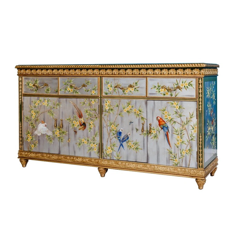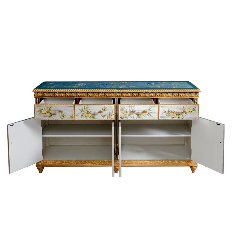 Buffet French Style Home Furnishing Four-Bucket Four Doors Wooden Chest Hand Painted Sideboard