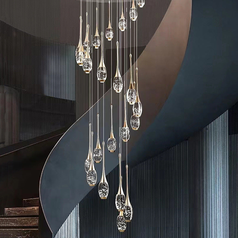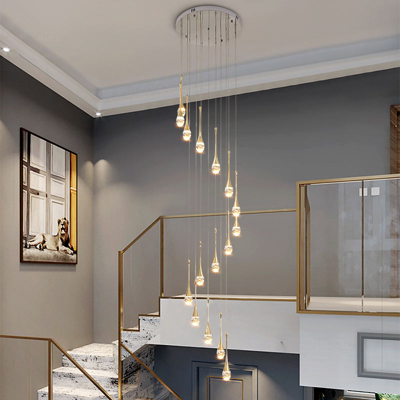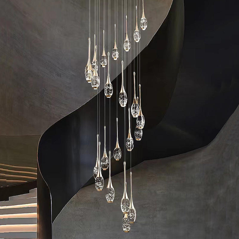 Custom Luxury Crystal LED Chandelier, 2700K–6000K Dimmable Staircase Lighting for Hotels & Villas