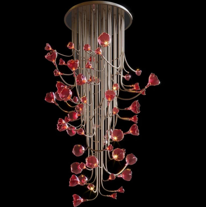 Design Chandelier Red Color Flower Pendant Light Banquet Hall Home Lobby Staircase Decorative Chandelier