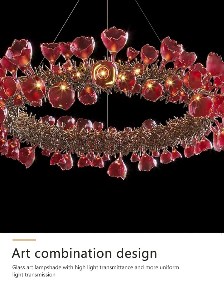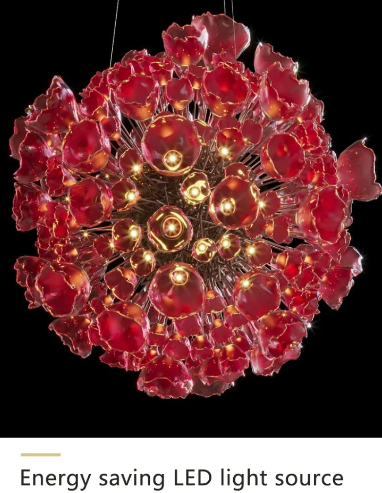 Upgrade the ambiance of your space with our stunning Design Chandelier. Its modern style and red color with flower design adds a touch of elegance to any room, while the LED light source provides energy-efficient and long-lasting illumination. Perfect for hotels, villas, and dining rooms.