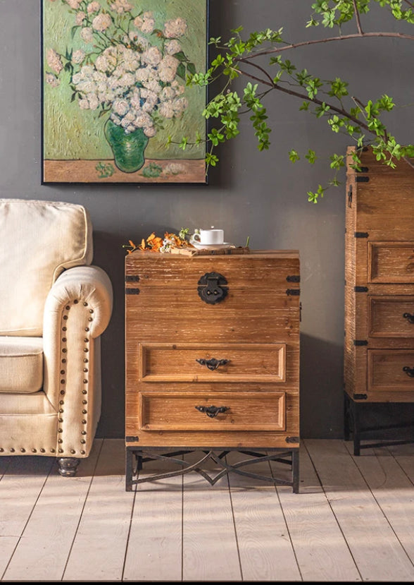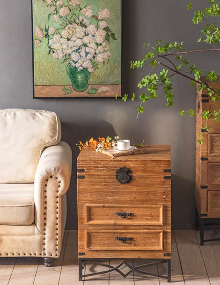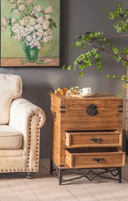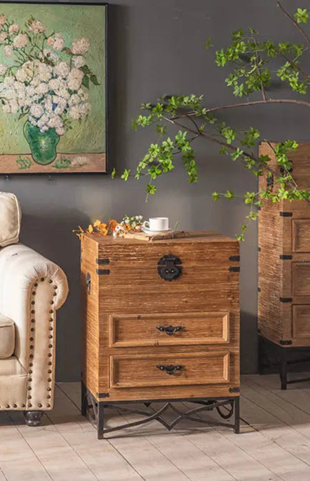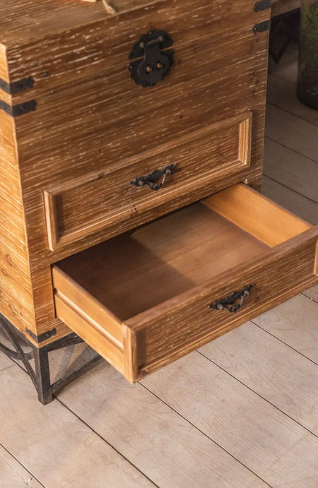 Elevate your bedroom with our Japanese Wood Storage Table. This premium piece features a minimalist design, adjustable height and other attributes suited for your living room, bedroom or apartment. Crafted with a blend of wood and iron, it exudes a vintage touch. Assembled and packed in a sophisticated carton, making it a perfect addition to your bedroom furniture.