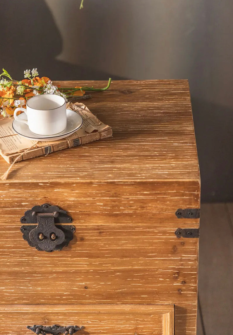 Japanese Wood Storage Table Bedroom Living Room Furniture Retro Side Accent Cabinet
