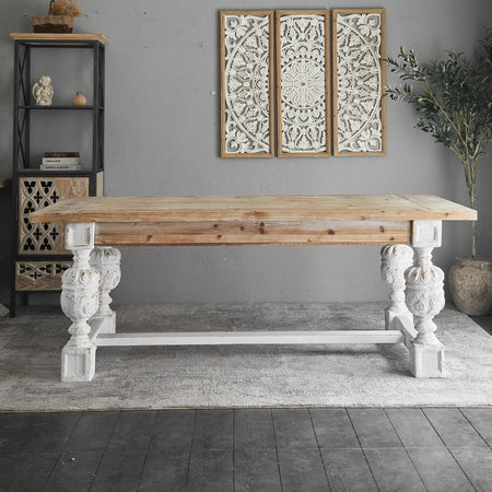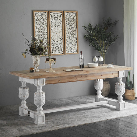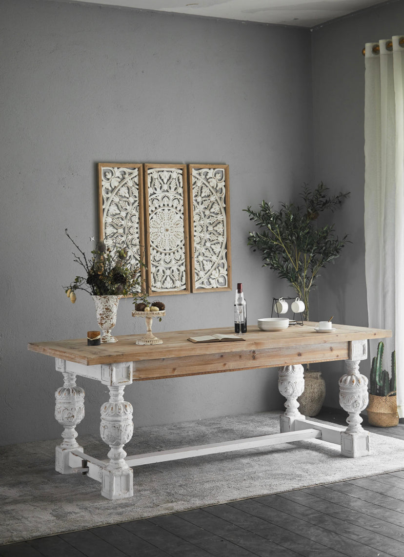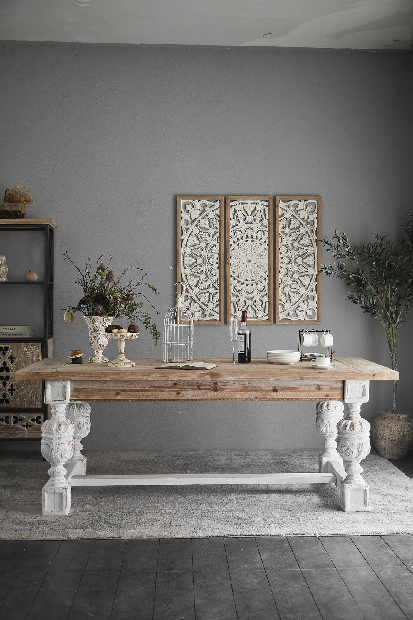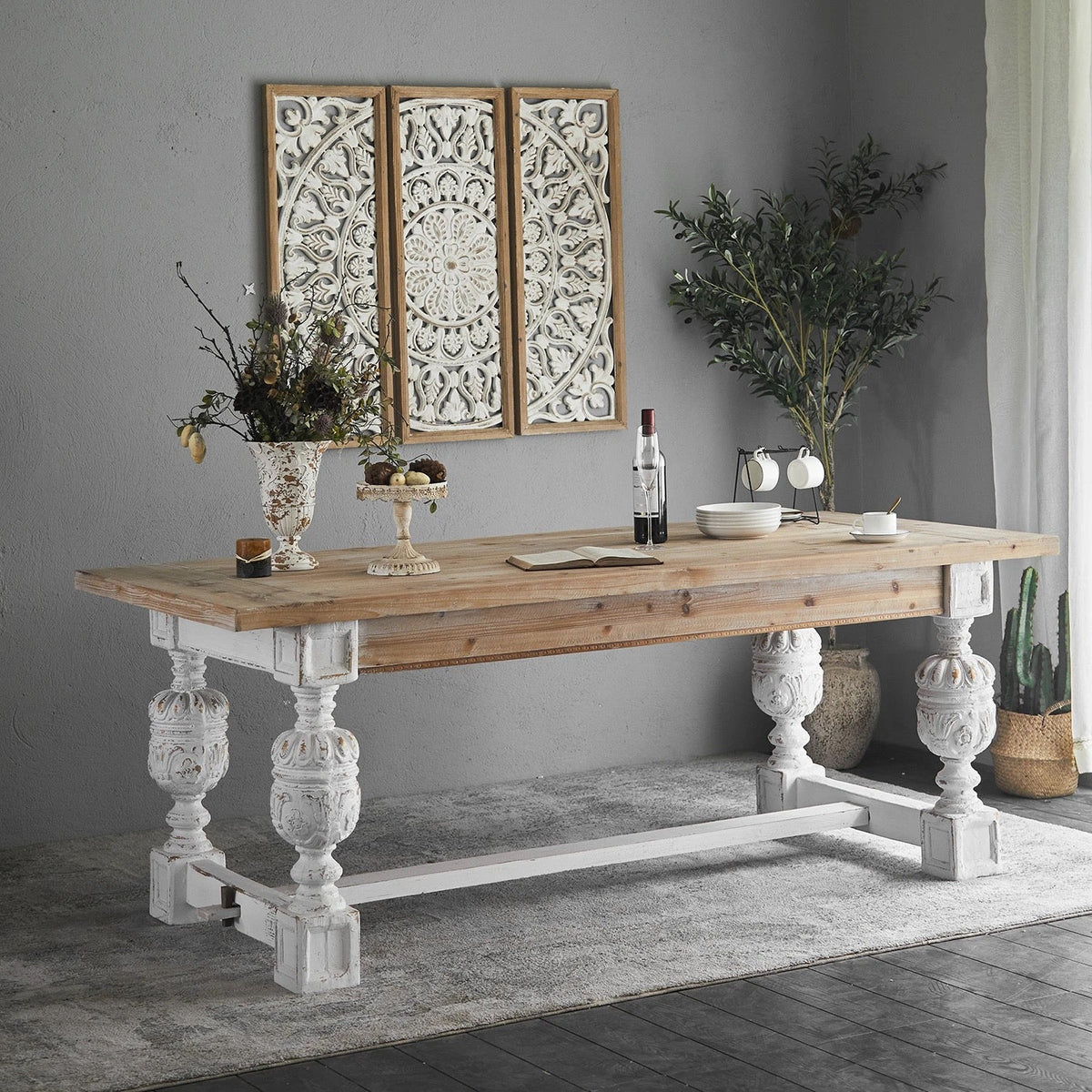 Introduce a touch of retro elegance to your living space with the Living Room Dining Table. Made of solid wood and adorned with sophisticated design details, this round table is perfect for intimate gatherings or quiet moments. Its antique appearance adds a vintage charm to any room, while its sturdy construction ensures lasting quality. Embrace luxury and style with this exquisite accent table.