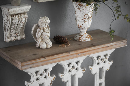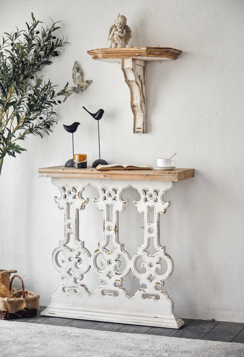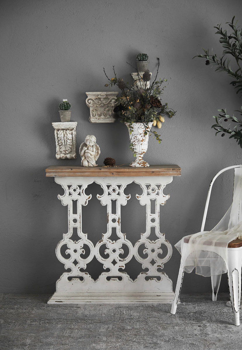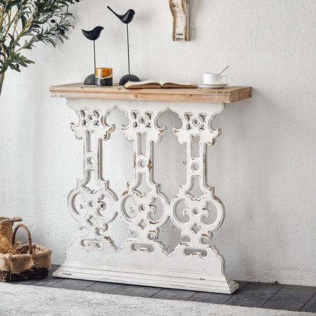 Experience sophistication and exclusivity with our vintage console table. Crafted with wood fir and magnesium oxide, it adds a touch of elegance to any living room, hotel, or farmhouse. Assembled and packed in Germany, this antique design piece is perfect for displaying your art or literature collection.