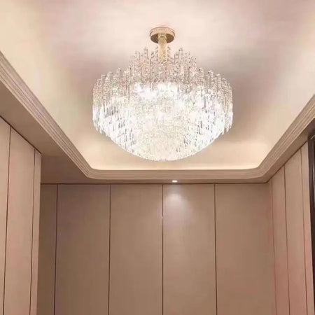 Enhance the luxurious look of your home with our Modern Classic Crystal Chandelier. Made with high-grade steel, this 5-year warranty chandelier boasts a sleek design and energy-saving LED light source. Available in gold or chrome finishes, it's perfect for modern living rooms and comes with auto CAD layout and project installation services.