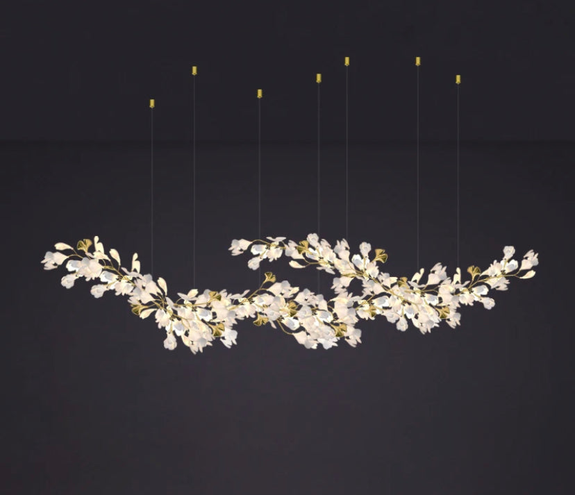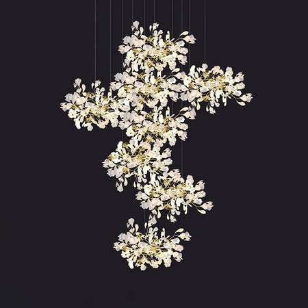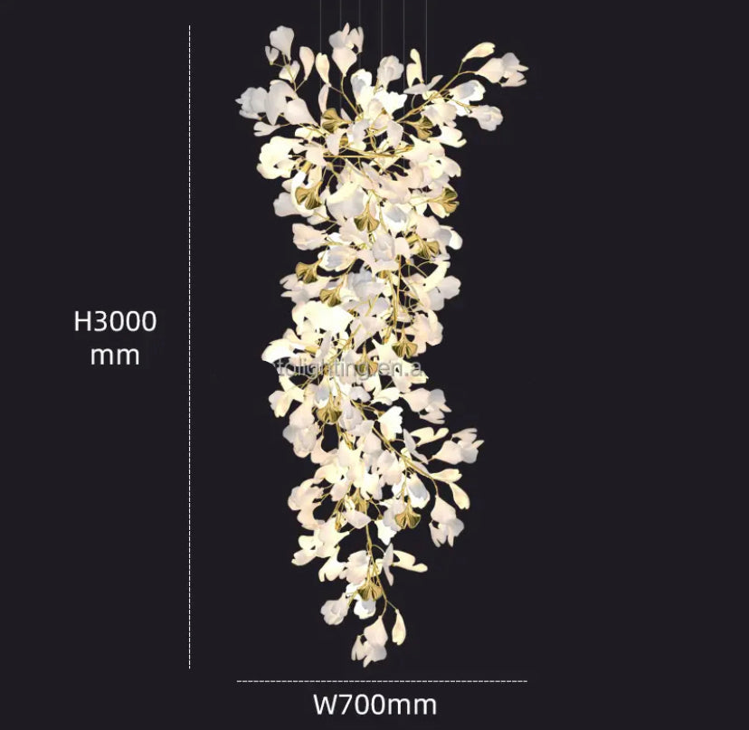 Luxury Chandelier Indoor Home Leaves Staircase Hotel Lobby Custom Ceramic Ginkgo Leaf Chandelier