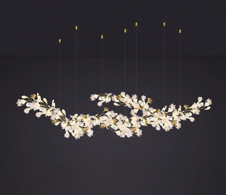Elevate the elegance of your home or hotel with our Modern Design Chandelier. Crafted in Italy, this custom ceramic leaf chandelier exudes a stylish, contemporary vibe. With a 4-year warranty, its metal and stainless steel/copper body ensures durability. Enjoy warm, 3500K light with 80lm/w luminous flux, and control it via switch or remote.