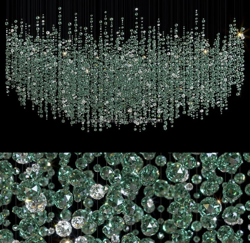 Modern Design Staircase Chandeliers Indoor Home Hotel Green Crystal Hall Pendant Lighting