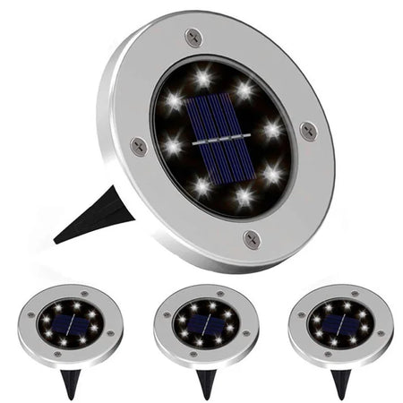 Orelli Lightings 4-Pack Solar 8-LED Disk Ground Lights, White/Warm, Waterproof