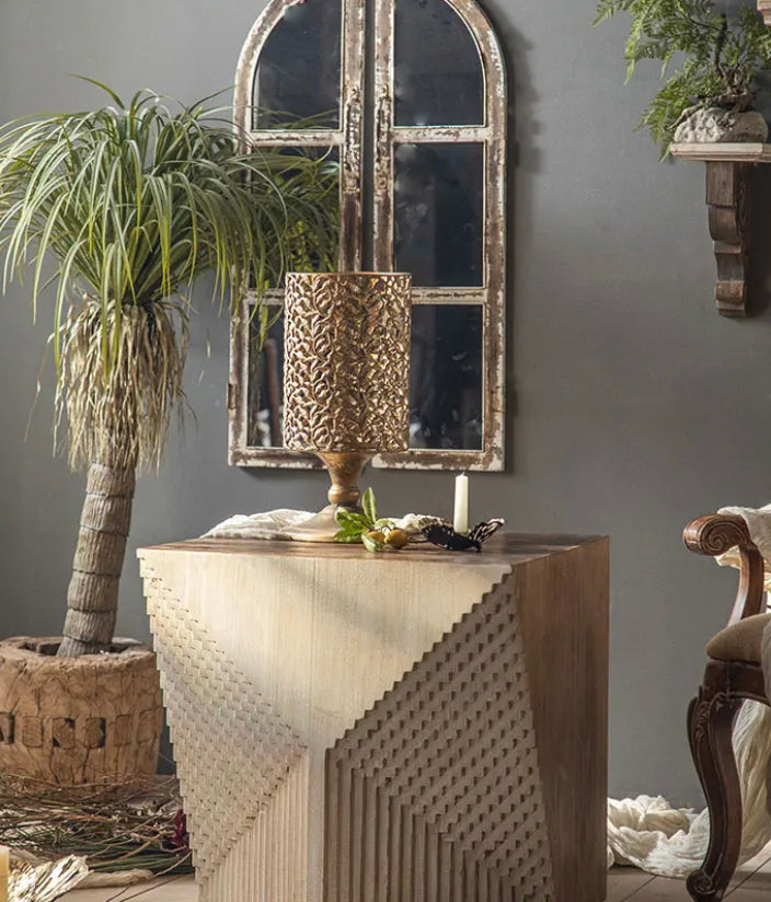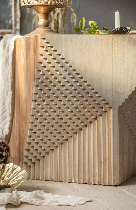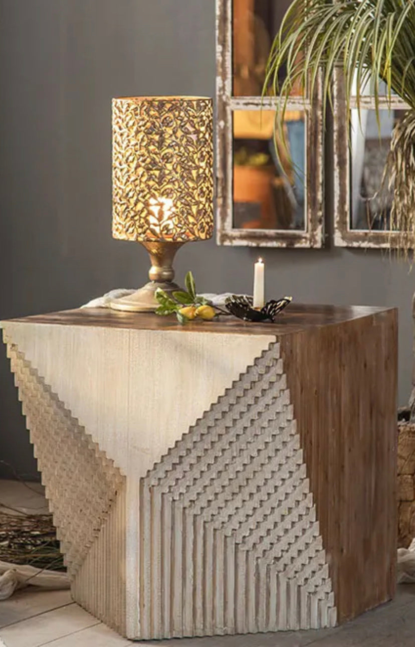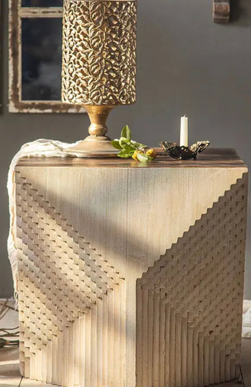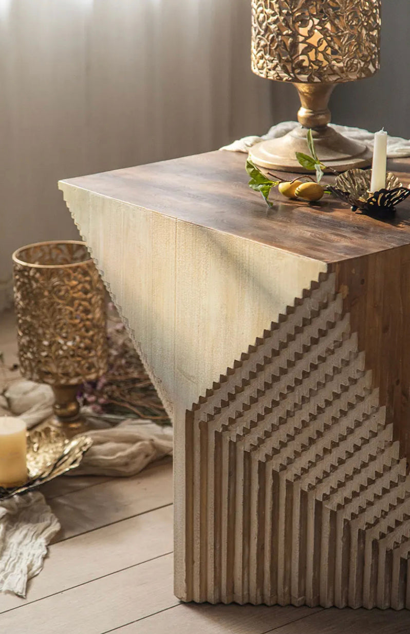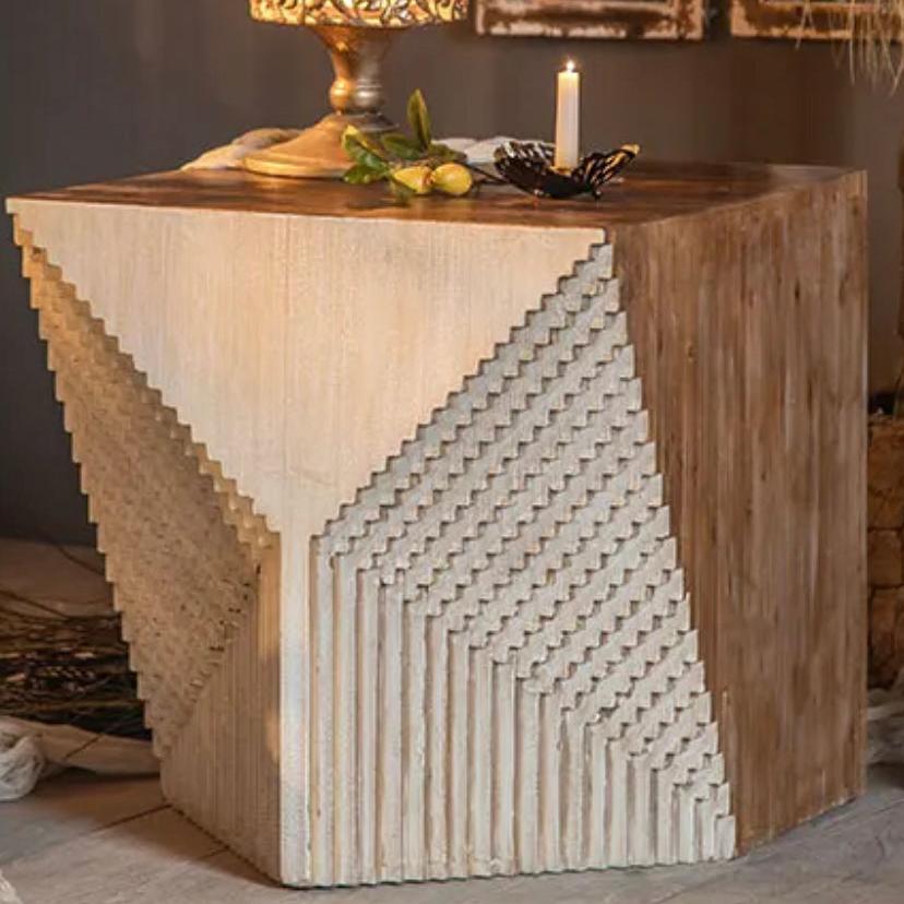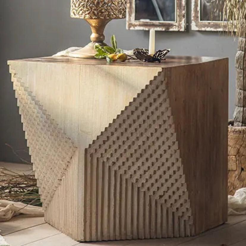 Elevate your living space with our Unique Shape Solid Wood Accent Table. Made from eco-friendly fir wood, this stylish table is adjustable, convertible and extendable. Its minimalist design and antique appearance make it a sophisticated addition to any room. Perfect for hotels, apartments, and office buildings.
